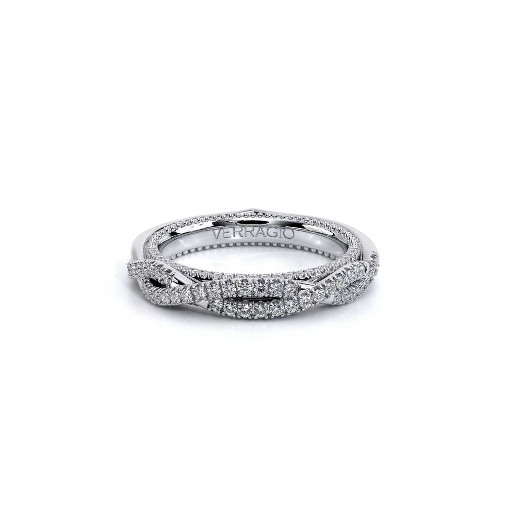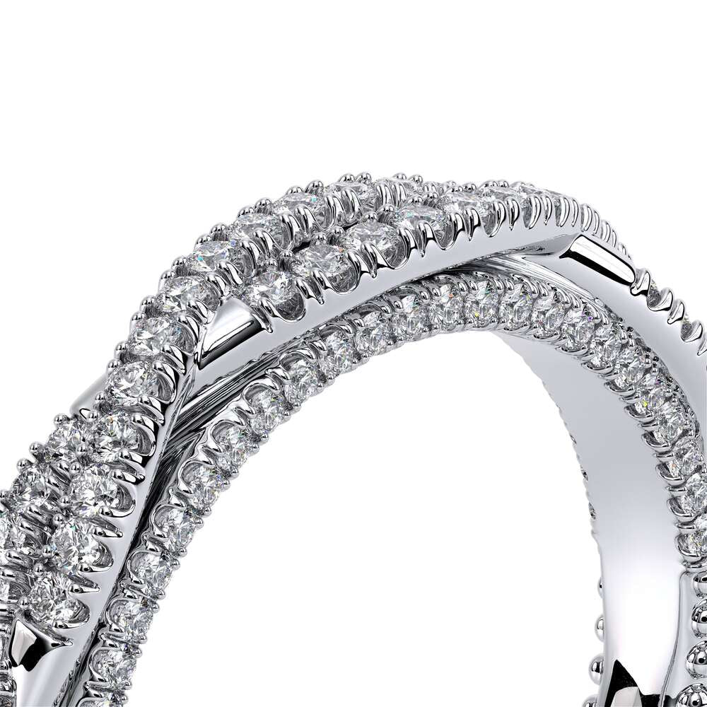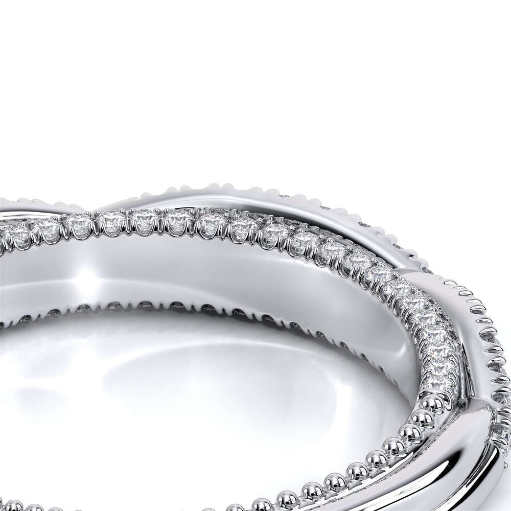 COUTURE-0451W Elegant Twist Wedding band pave with round brilliant diamonds, featuring Half Diamond Riviera-Signature Beading profile, completed with the Couture pointed shank.