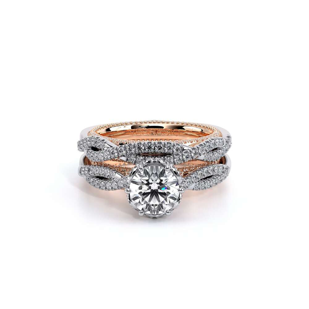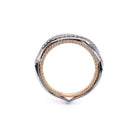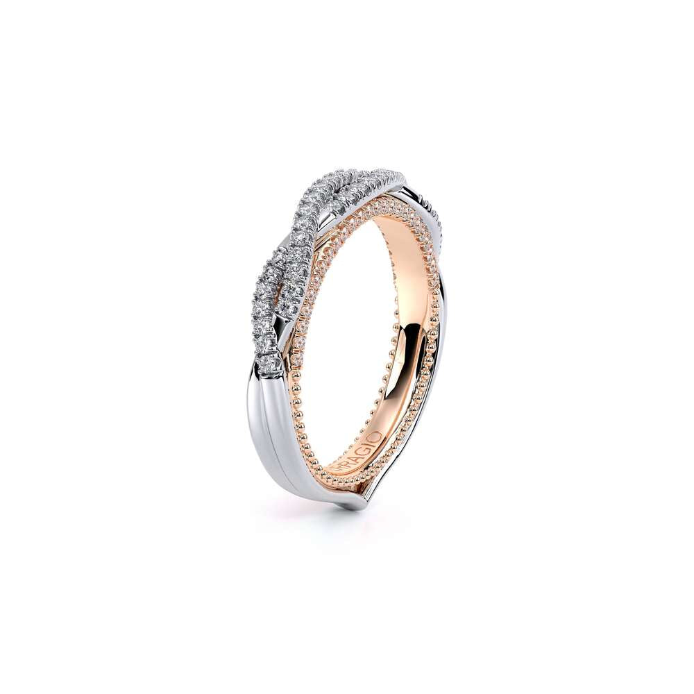 COUTURE-0451W Elegant Twist Wedding band pave with round brilliant diamonds, featuring Half Diamond Riviera-Signature Beading profile, completed with the Couture pointed shank.