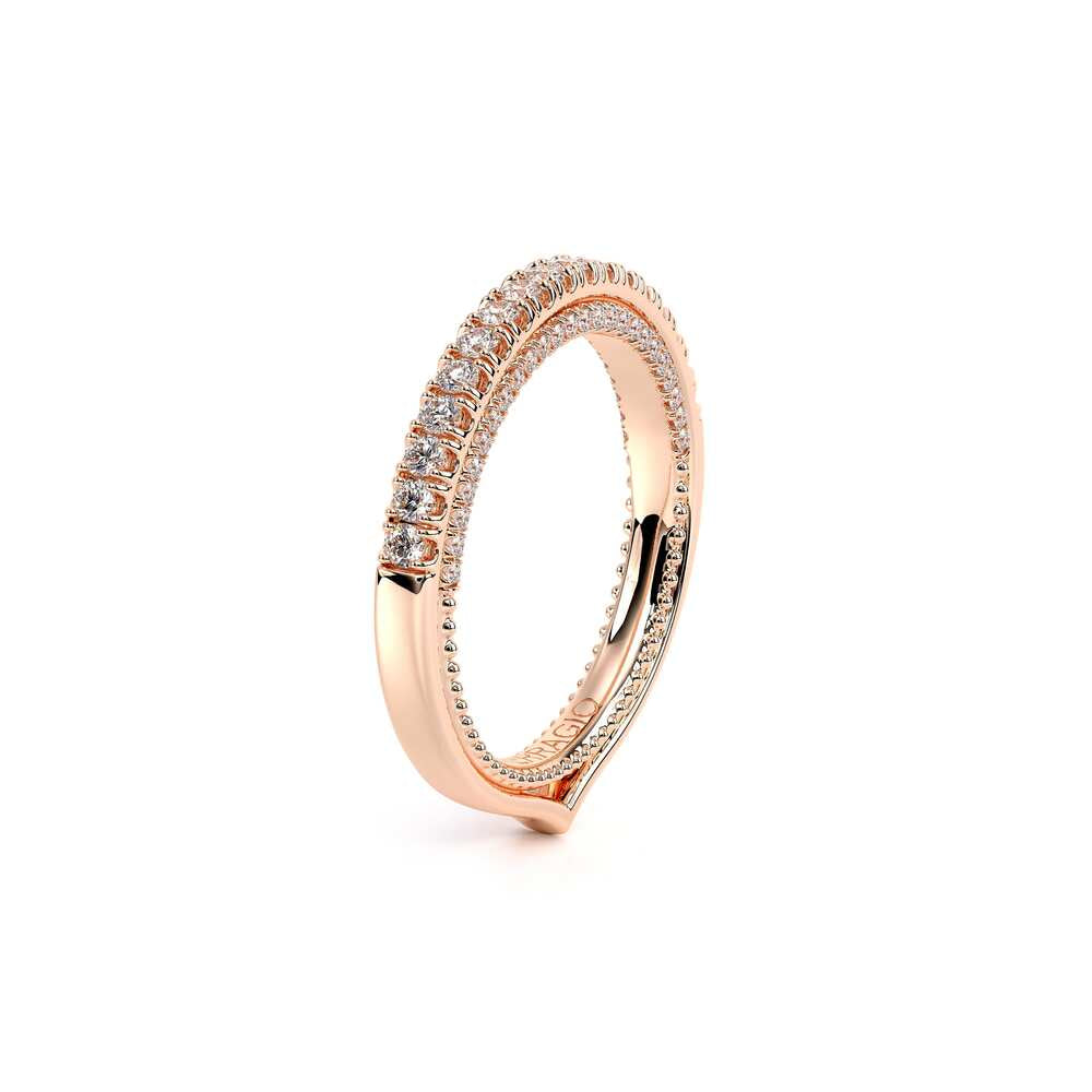 COUTURE-0452W Dazzling Wedding band pave with round brilliant diamonds, featuring Half Diamond Riviera-Signature Beading profile, completed with the Couture pointed shank.