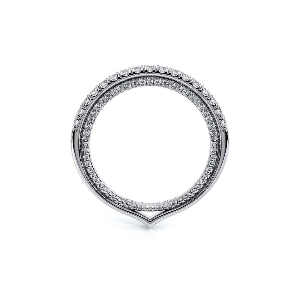 COUTURE-0452W Dazzling Wedding band pave with round brilliant diamonds, featuring Half Diamond Riviera-Signature Beading profile, completed with the Couture pointed shank.