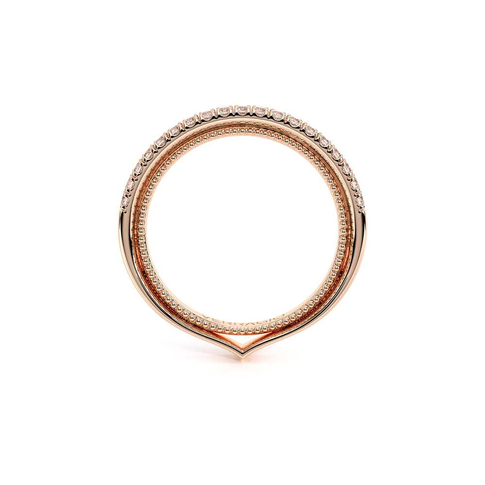 COUTURE-0457W Timeless Wedding band pave with round brilliant diamonds, featuring a full Signature Beading profile, completed with the Couture pointed shank.