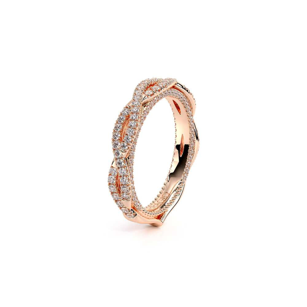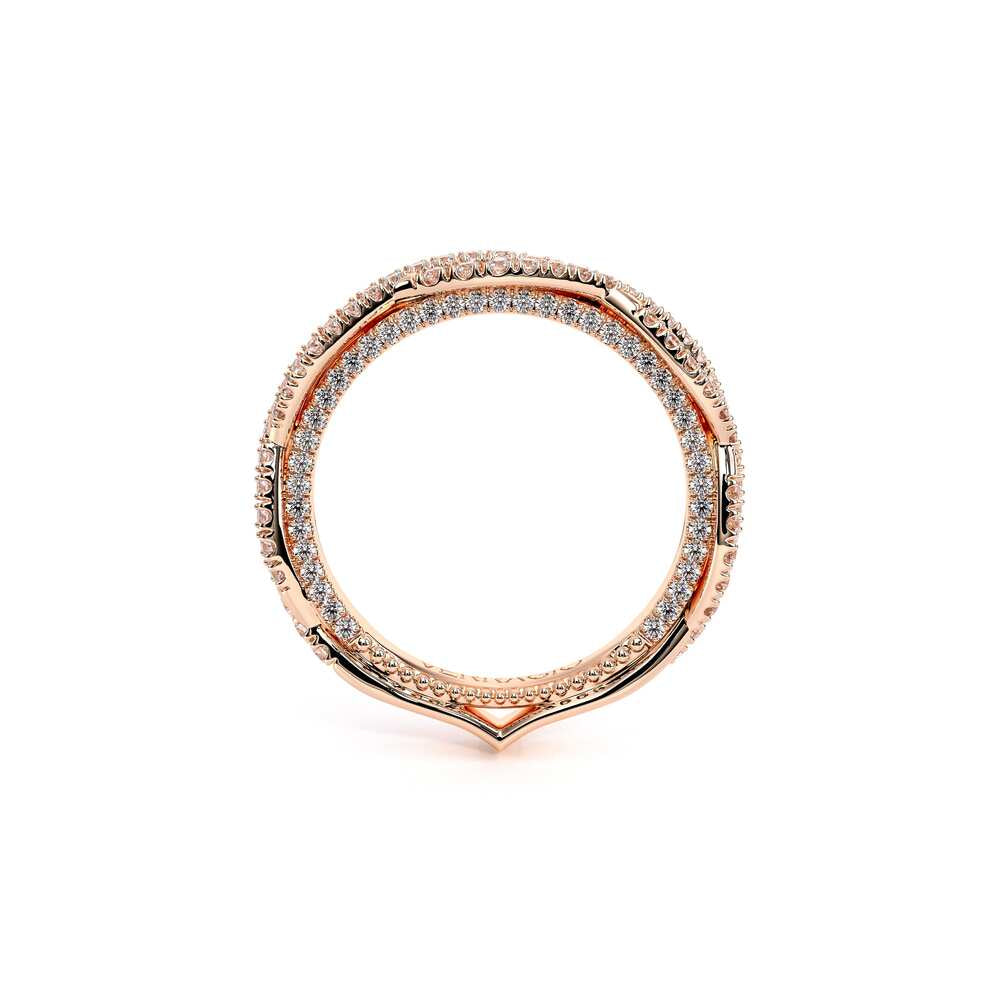 COUTURE-0466W Elegant Twist Wedding band pave with round brilliant diamonds, featuring 3/4 Diamond Riviera-Signature Beading profile, completed with the Couture pointed shank.