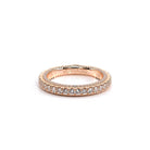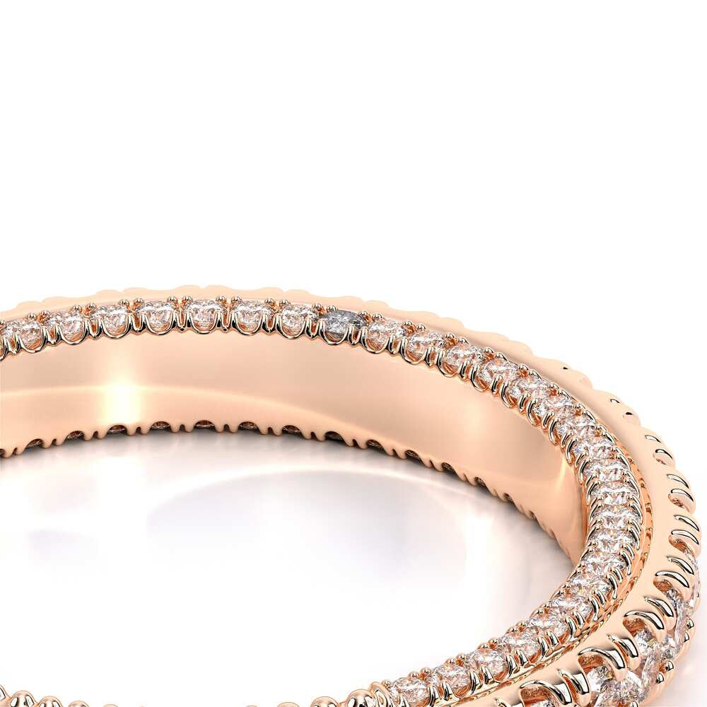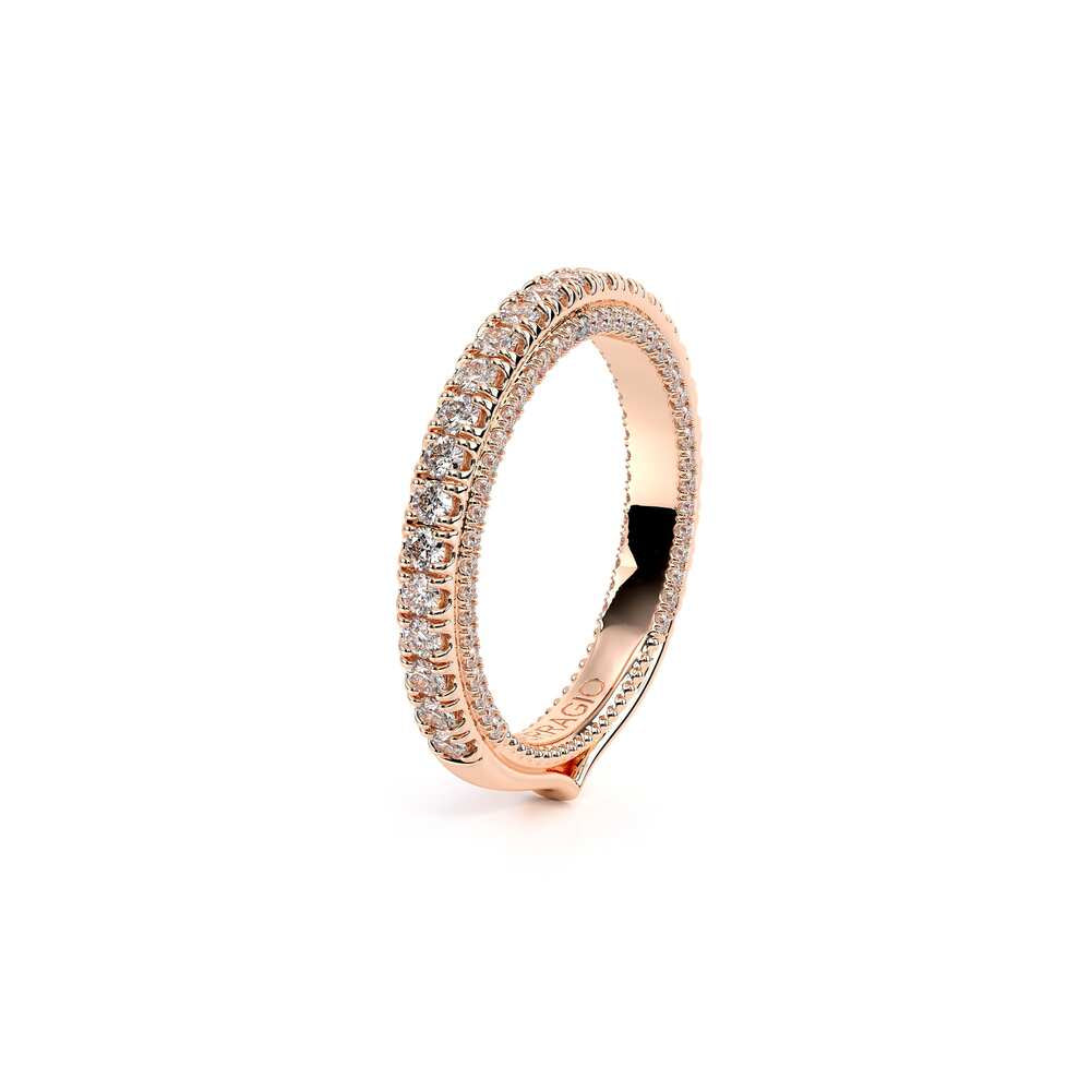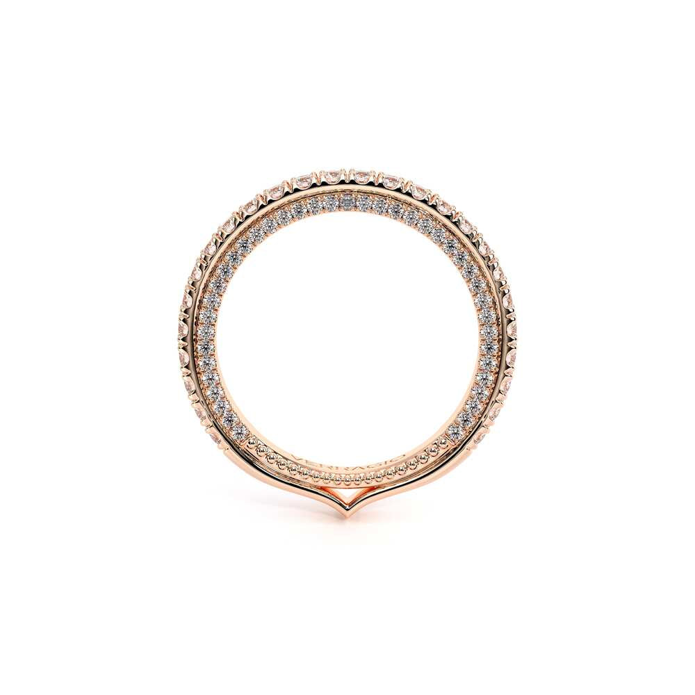 COUTURE-0468W Dazzling Pave set wedding band with round brilliant diamonds, featuring 3/4 Diamond Riviera-Signature Beading profile, completed with the Couture pointed shank.