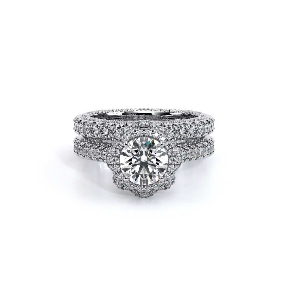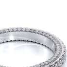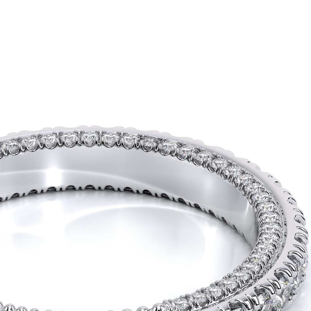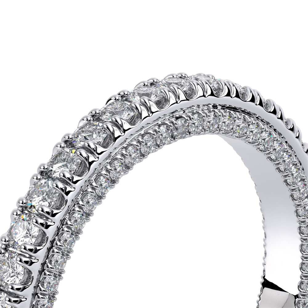 COUTURE-0468W Dazzling Pave set wedding band with round brilliant diamonds, featuring 3/4 Diamond Riviera-Signature Beading profile, completed with the Couture pointed shank.