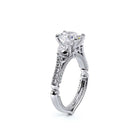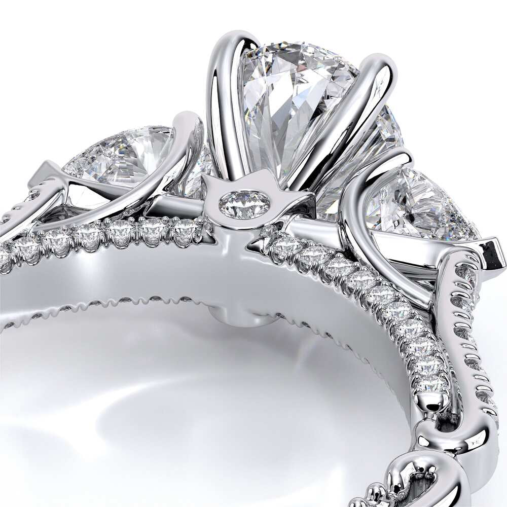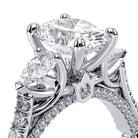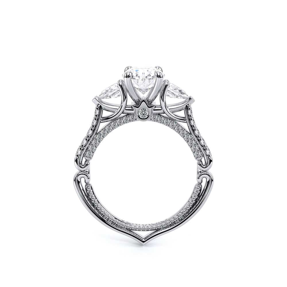 COUTURE-0470PS Beautiful Oval three stone Engagement ring pave set with round brilliant diamonds, adorning the Verragio Crest and half Diamond Riviera along with our Verragio Signature Beading profile, completed with the Couture shank.