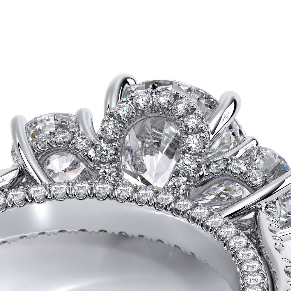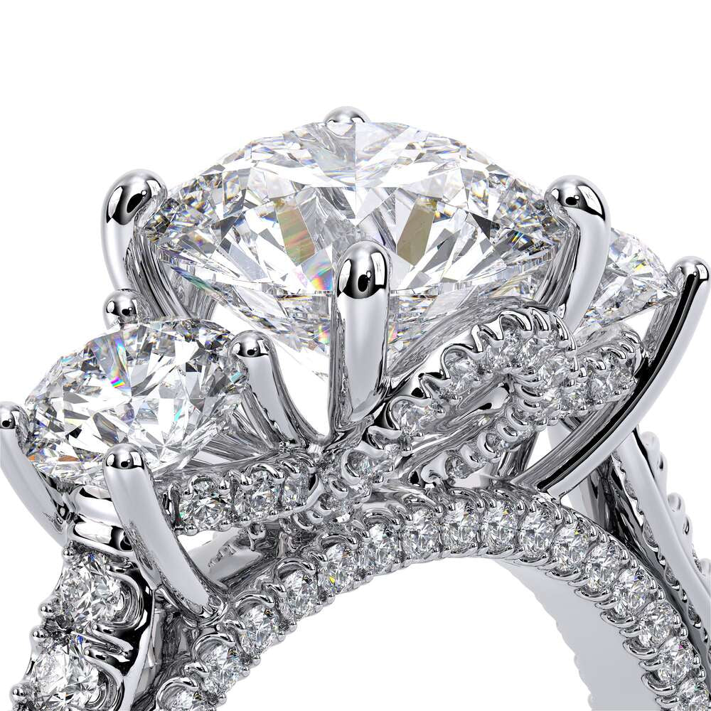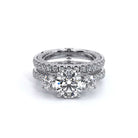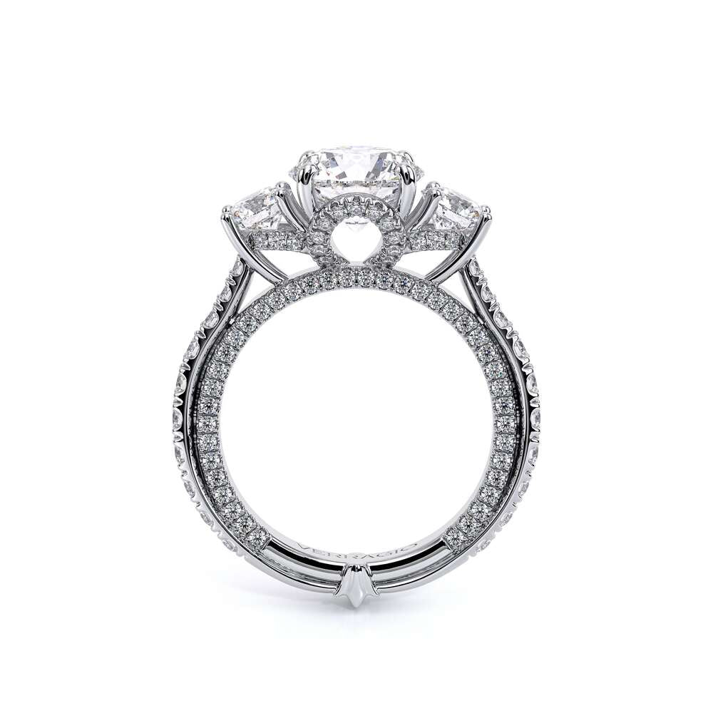 COUTURE-0479R is our new Three Stone Engagement ring, highlighting our meticulously set diamond bridge elevating the surrounding round side stones. With the addition of our 3/4 Diamond Riviera and Verragio's signature crest the brilliance of this style is unlike any other.