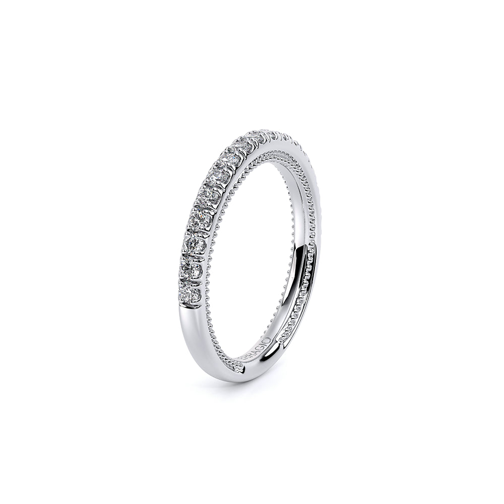 Couture-0485W is a sleek wedding band featuring Verragio Signature Beading on a meticulous prong-set diamond band. It's the perfect companion to Couture-0485 engagement ring styles, adding sophisticated refinement.