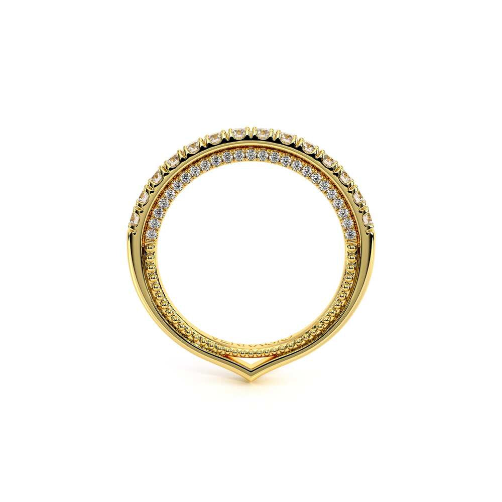 COUTURE_0447W Dazzling Wedding band pave with round brilliant diamonds, featuring Half Diamond Riviera-Signature Beading profile, completed with the Couture pointed shank.