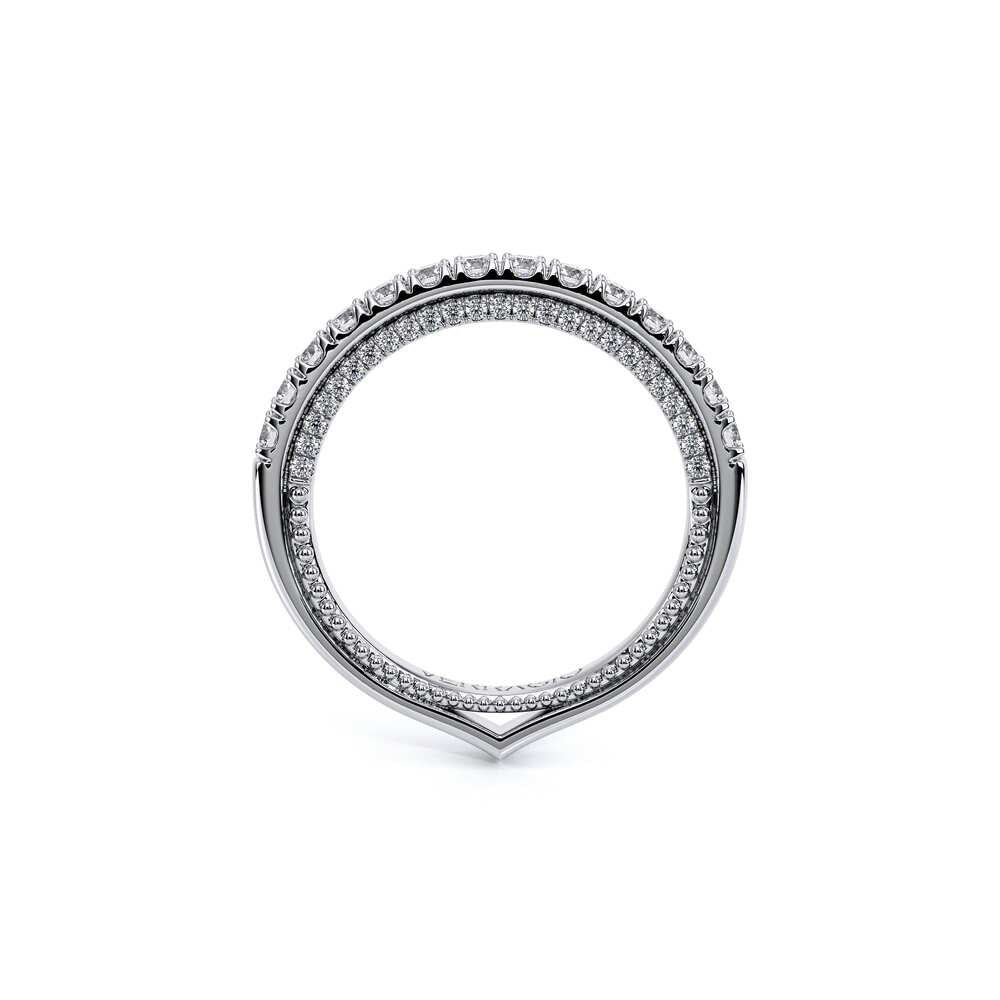 COUTURE_0447W Dazzling Wedding band pave with round brilliant diamonds, featuring Half Diamond Riviera-Signature Beading profile, completed with the Couture pointed shank.