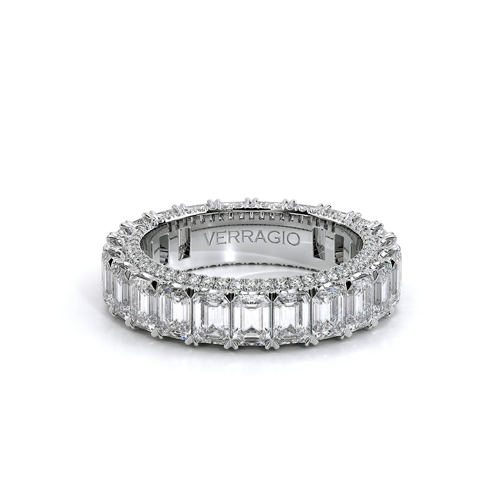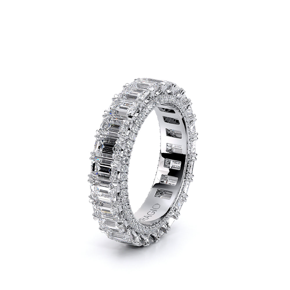 Eterna-2021-EM-4, Diamond Eternity band featuring stunning Emerald cut diamonds going all the way around along with our signature diamond riviera with round brilliant cut diamonds added for shine.
