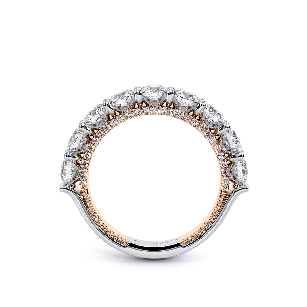 Eterna-2021-R-4-HW, Stunning Half way Eternity band featuring Round diamonds along with our signature half diamond riviera and beading completes this beautiful wedding band.