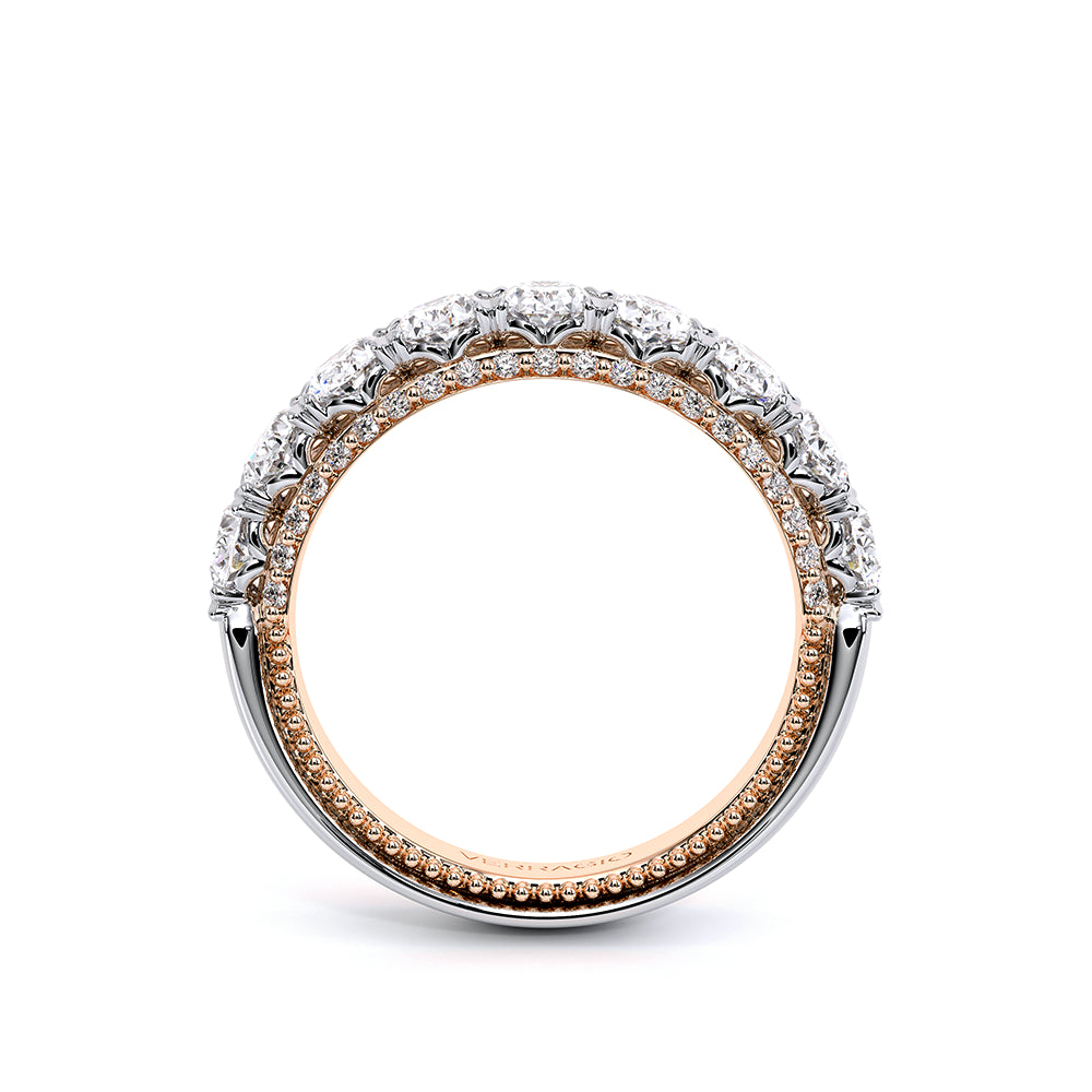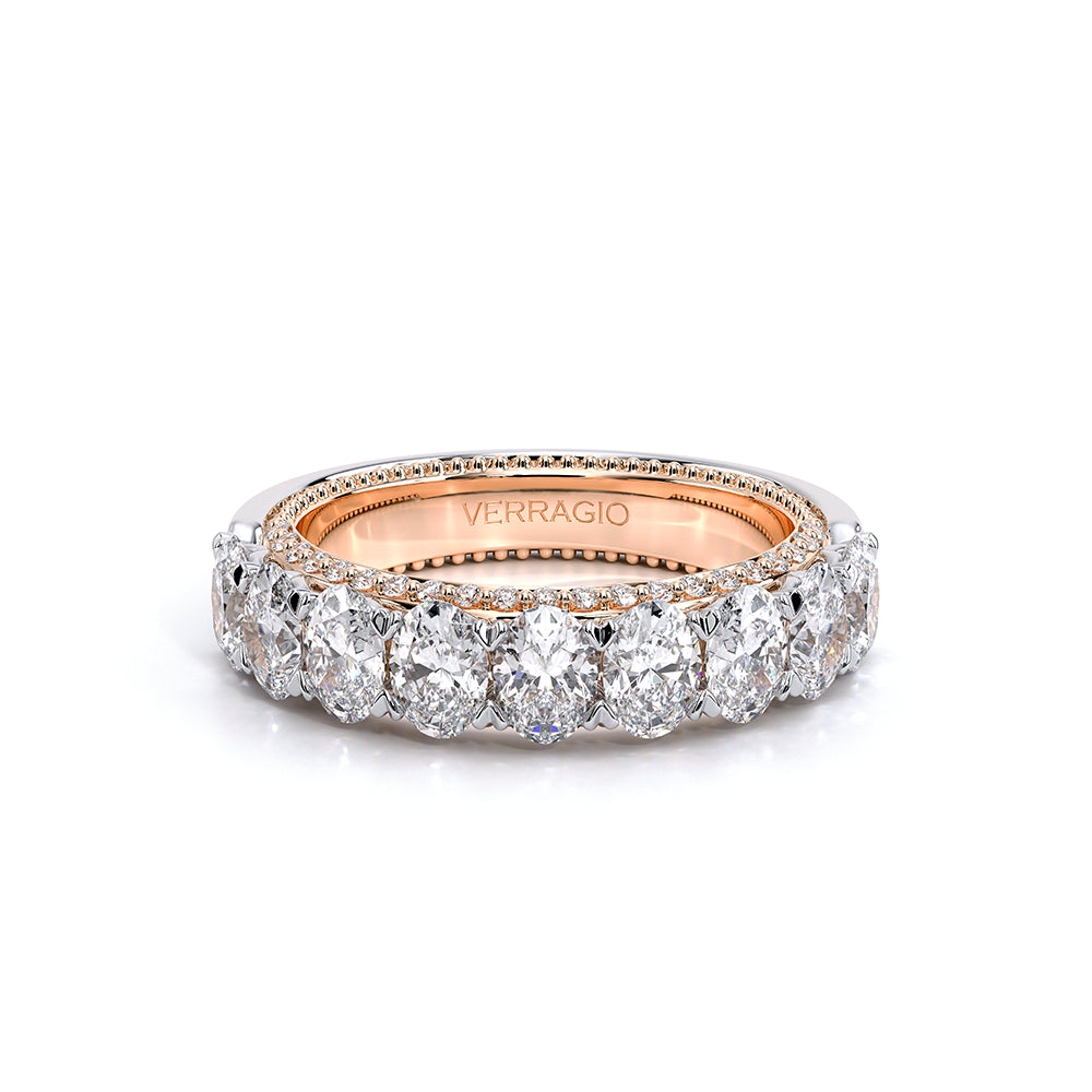 Eterna-2021-R-3-HW, Eternity style band featuring Oval cut diamonds going half way around. Our stunning half diamond riviera with round brilliant cut diamonds and signature beading come together to complete this beautiful piece.