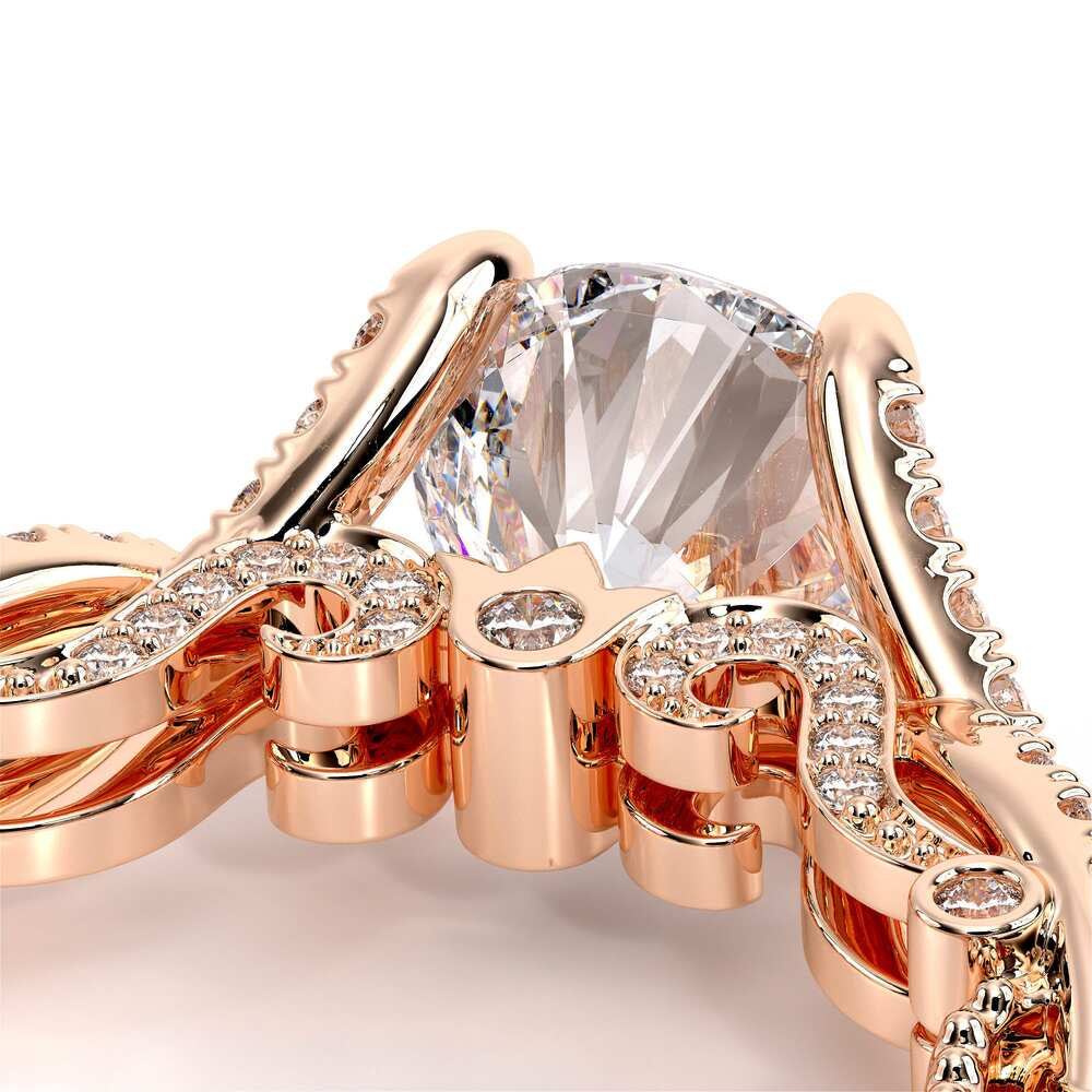 INSIGNIA-7060 Round engagement ring. Featuring, round brilliant-cut pave set diamonds on a twisted band. Distinctively paired with Verragio's handcrafted signature beading.