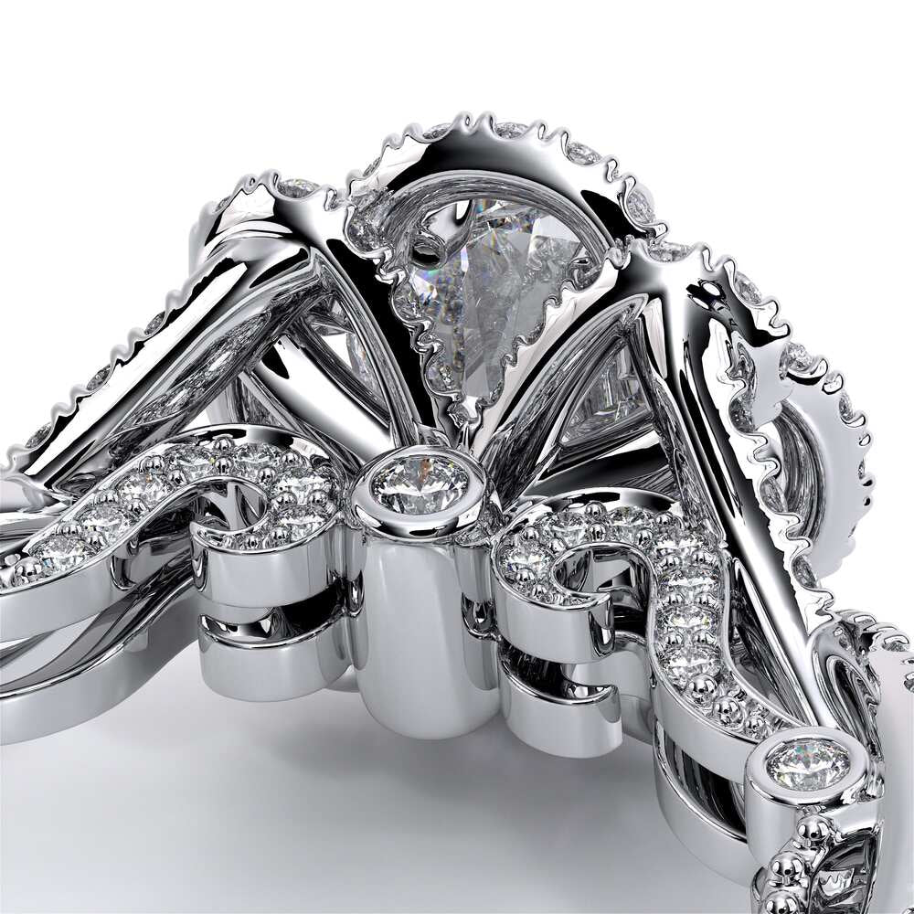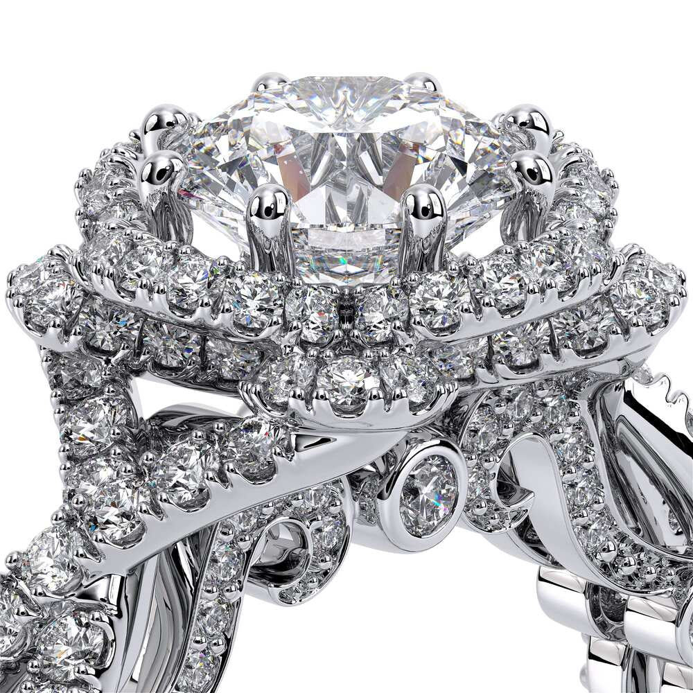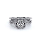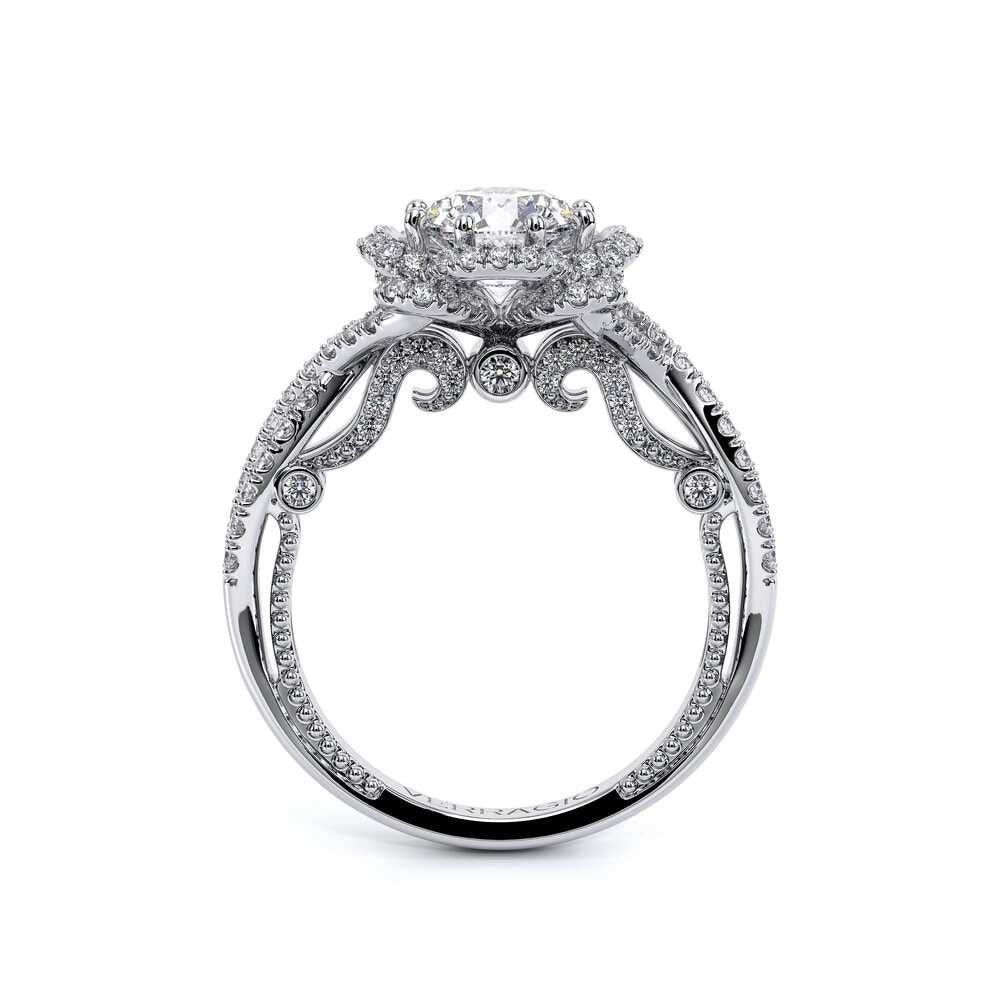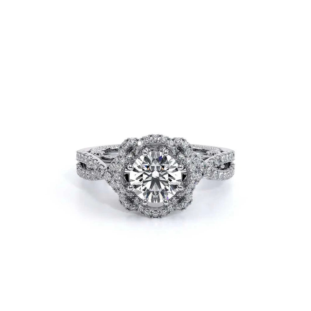 INSIGNIA-7087R Featuring, Verragio's uniquely designed handcrafted floret halo that is adorned with meticulously set round pave brilliant-cut diamonds on a twisted band. Encompassed by Insignia's handcrafted diamond scrollwork and Verragio's signature beading to enhance a Round diamond center.