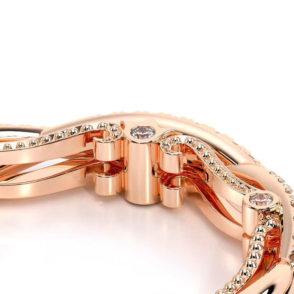 INSIGNIA-7091W diamond wedding ring from the Insignia Collection, featuring round brilliant-cut diamonds pave set on a twisted band. Unique with bezel set diamonds with distinguishing Insignia Scrollwork accompanied by Verragio's signature crest and beading.
