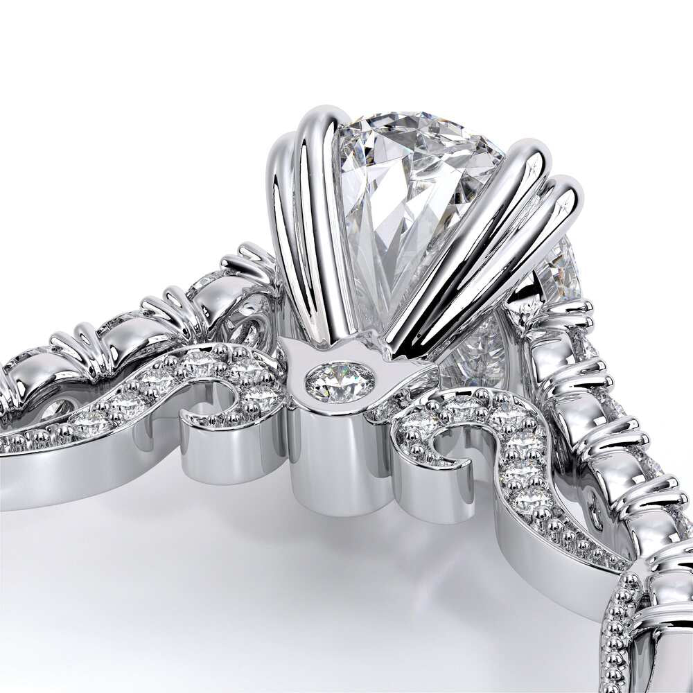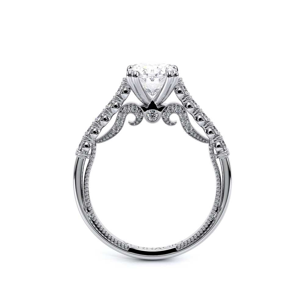 INSIGNIA-7097OV Classic engagement ring features a shared-prong set band with round brilliant-cut diamonds. Meticulously set and handcrafted is Insignia's scrollwork which seamlessly flows into Verragio's signature beading and crest.
