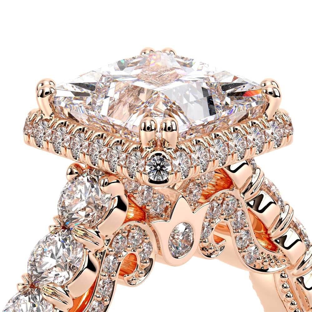 INSIGNIA-7100P Accentuates your Princess engagement ring with a pave set stardust halo illuminated by round brilliant-cut diamonds. Featuring, a shared-prong set band and handcrafted Insignia's scrollwork. Refined by Verragio's signature beading and crest.