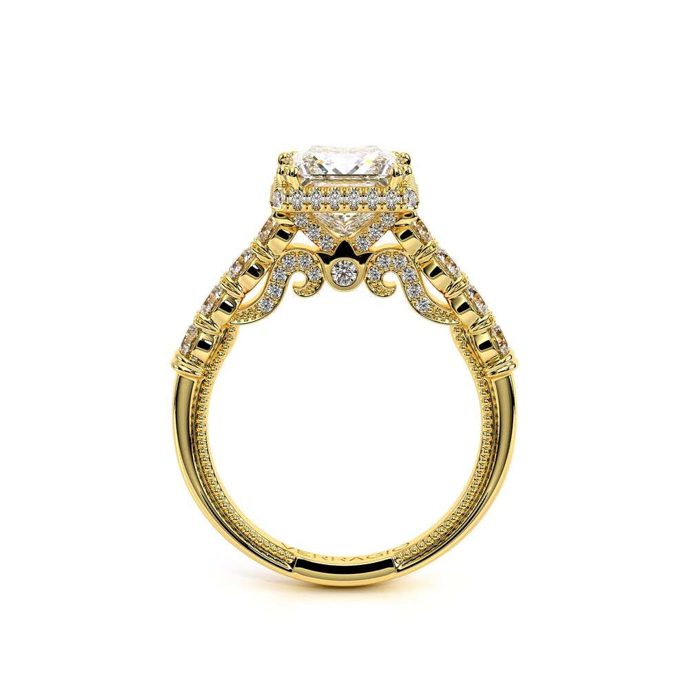 INSIGNIA-7100P Accentuates your Princess engagement ring with a pave set stardust halo illuminated by round brilliant-cut diamonds. Featuring, a shared-prong set band and handcrafted Insignia's scrollwork. Refined by Verragio's signature beading and crest.