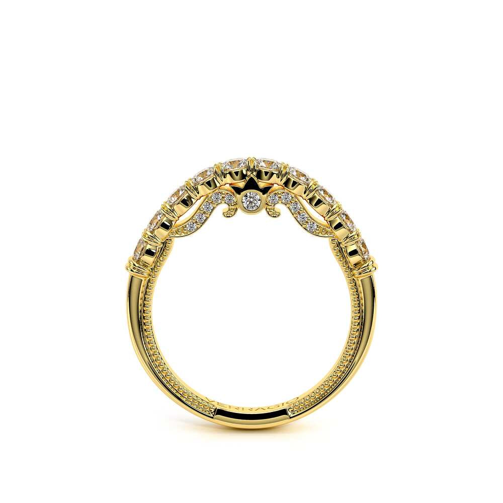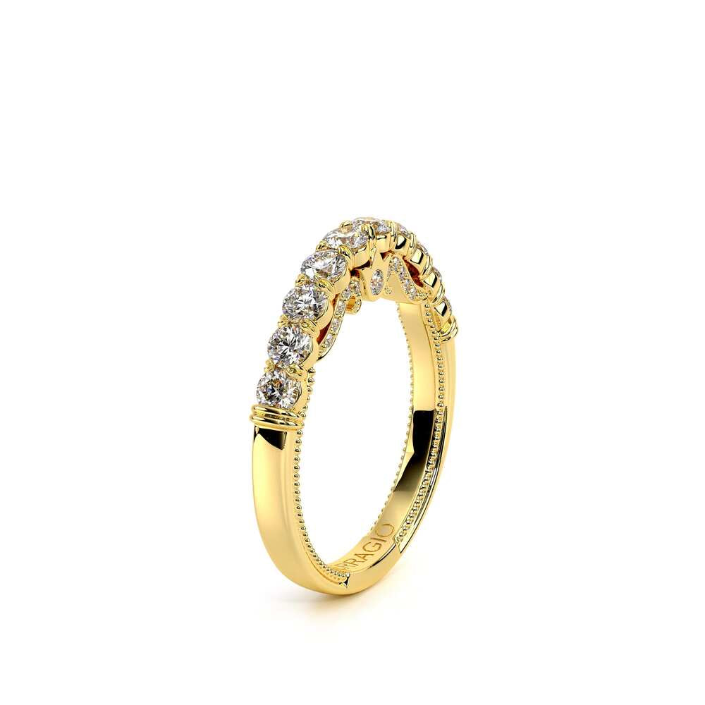 INSIGNIA-7100W diamond wedding ring from the Insignia Collection, featuring a shared-prong set band with round brilliant-cut diamonds. Distinguished by handcrafted diamond Insignia scrollwork amid Verragio's signature beading and crest.