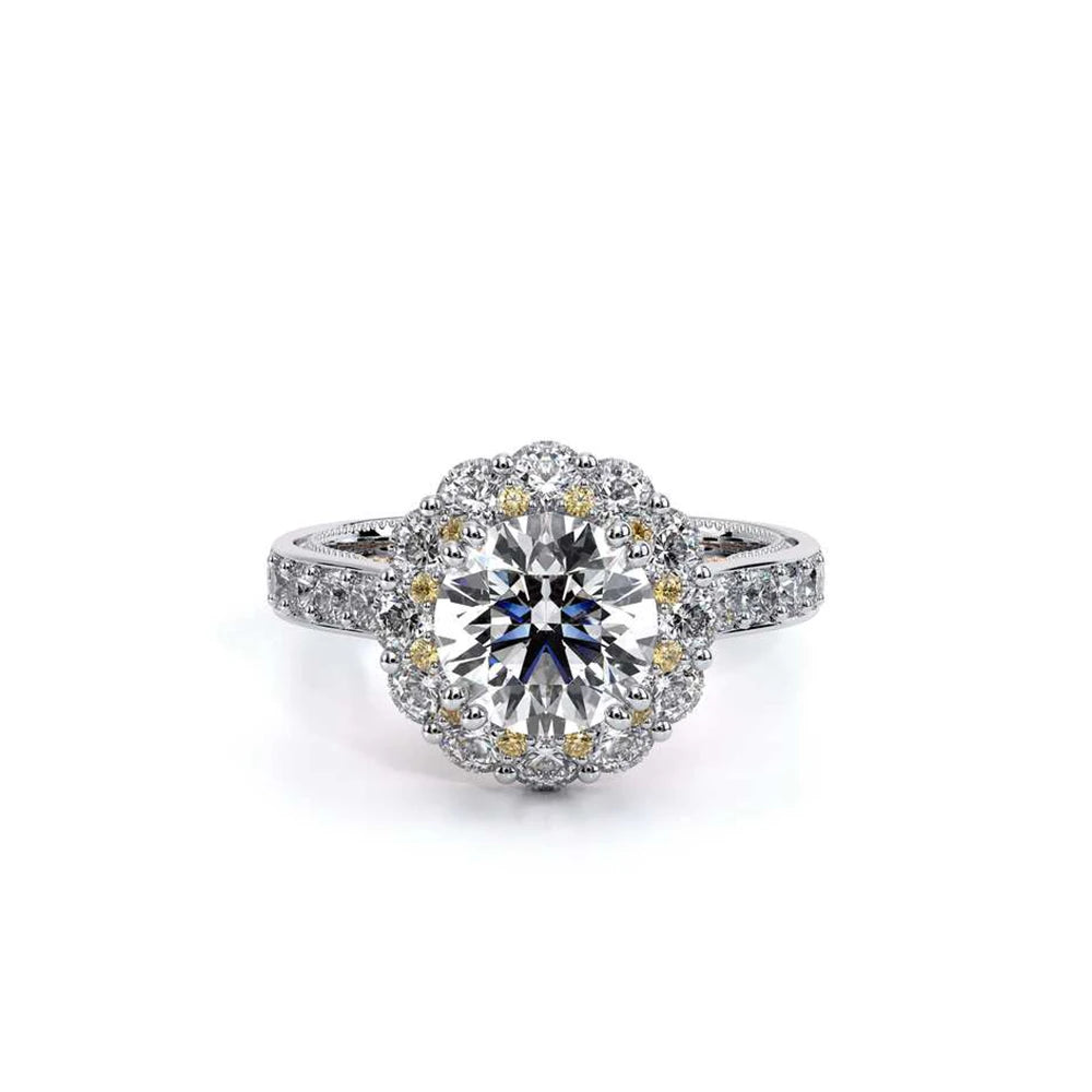 INSIGNIA-7106R Features our prestigious Enchanted Diamond Halo��, creating a truly unique engagement ring designed to emphasize your oval diamond center. Verragio's timeless signature beading along side Insignia's handcrafted diamond scrollwork are all details adding to the beauty and lure of this ring.