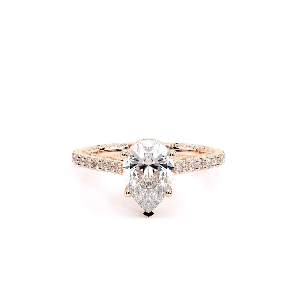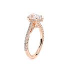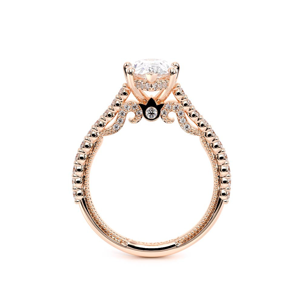The INSIGNIA-7111OV is a classically-evolved engagement ring, featuring pave-set diamonds to encircle and elevate any center stone. Atop a band embellished with round brilliant-cut diamonds, the ring showcases Insignia's bold diamond scrollwork, seamlessly uniting Verragio's iconic crest and signature beading.