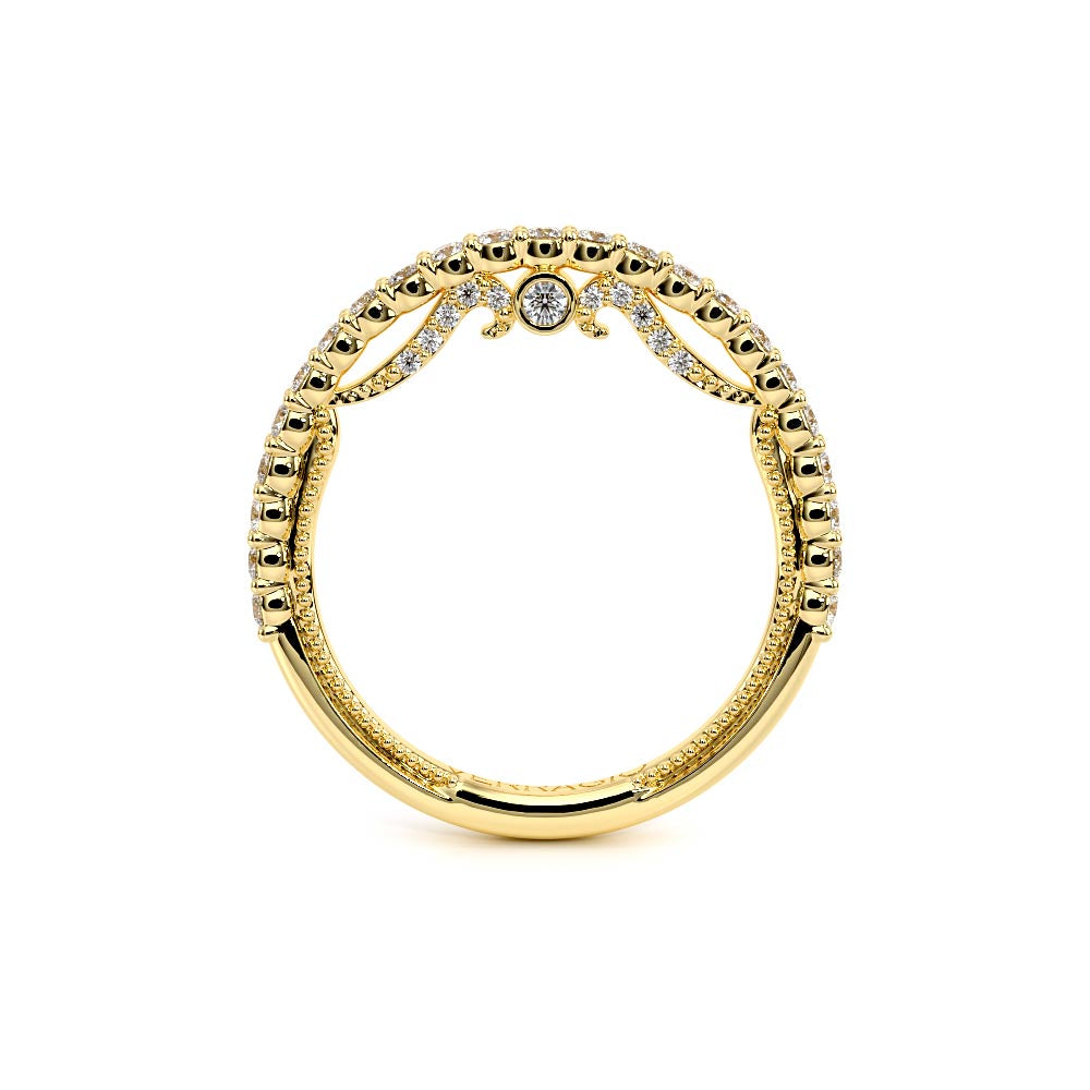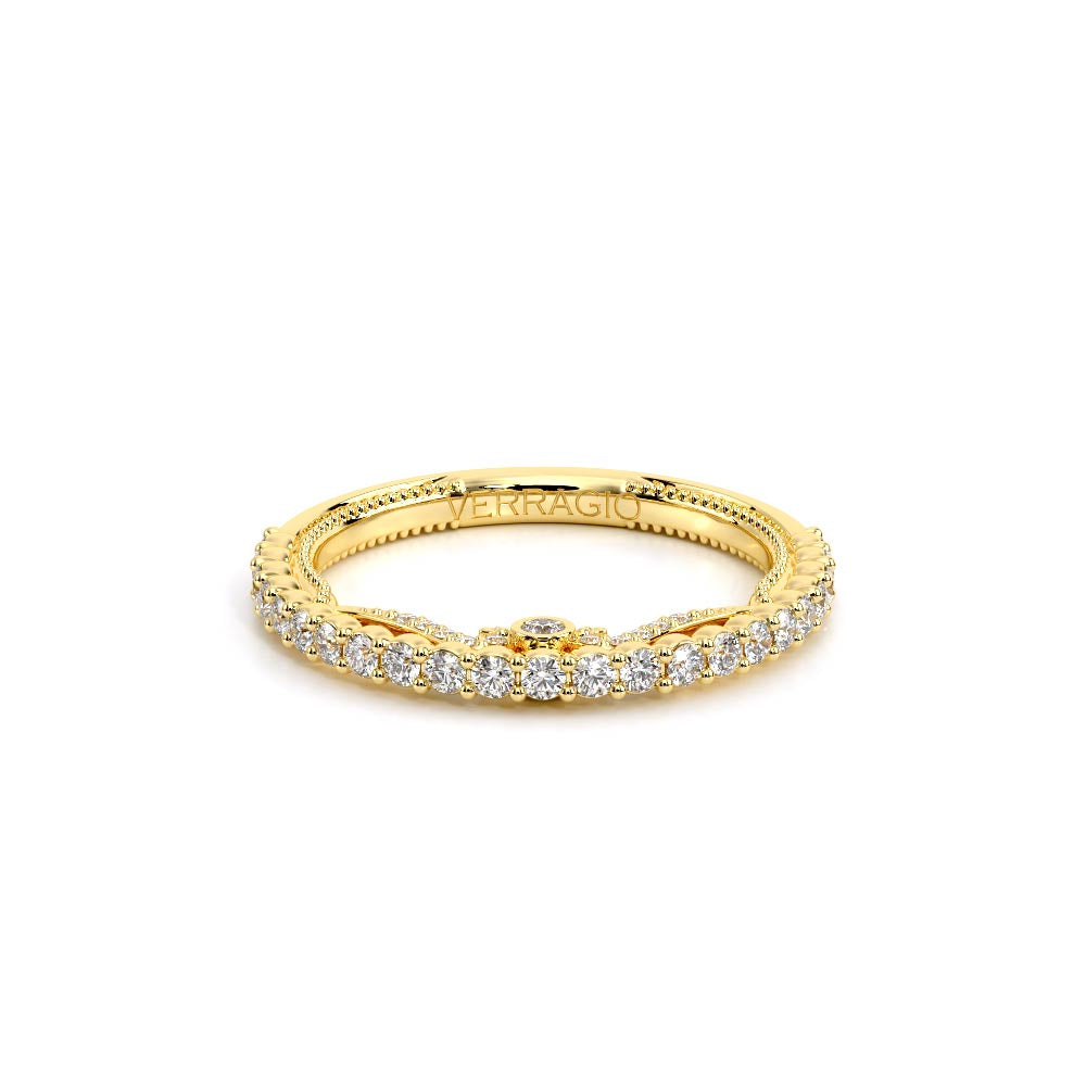 INSIGNIA-7111W diamond wedding ring from the Insignia Collection. Featuring a shared-prong set band with round brilliant-cut diamonds. Distinguished by handcrafted diamond Insignia scrollwork amid Verragio's signature beading.