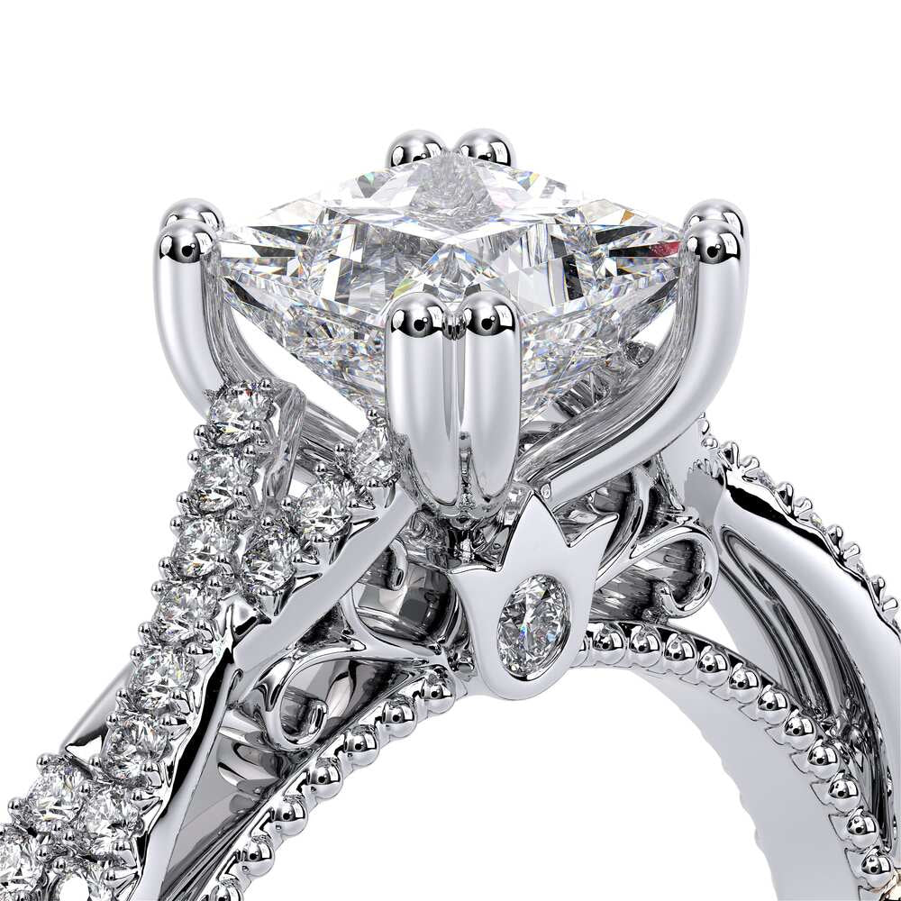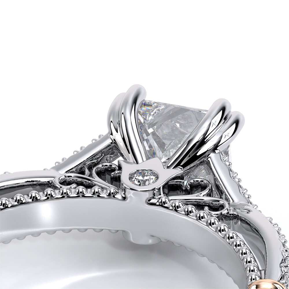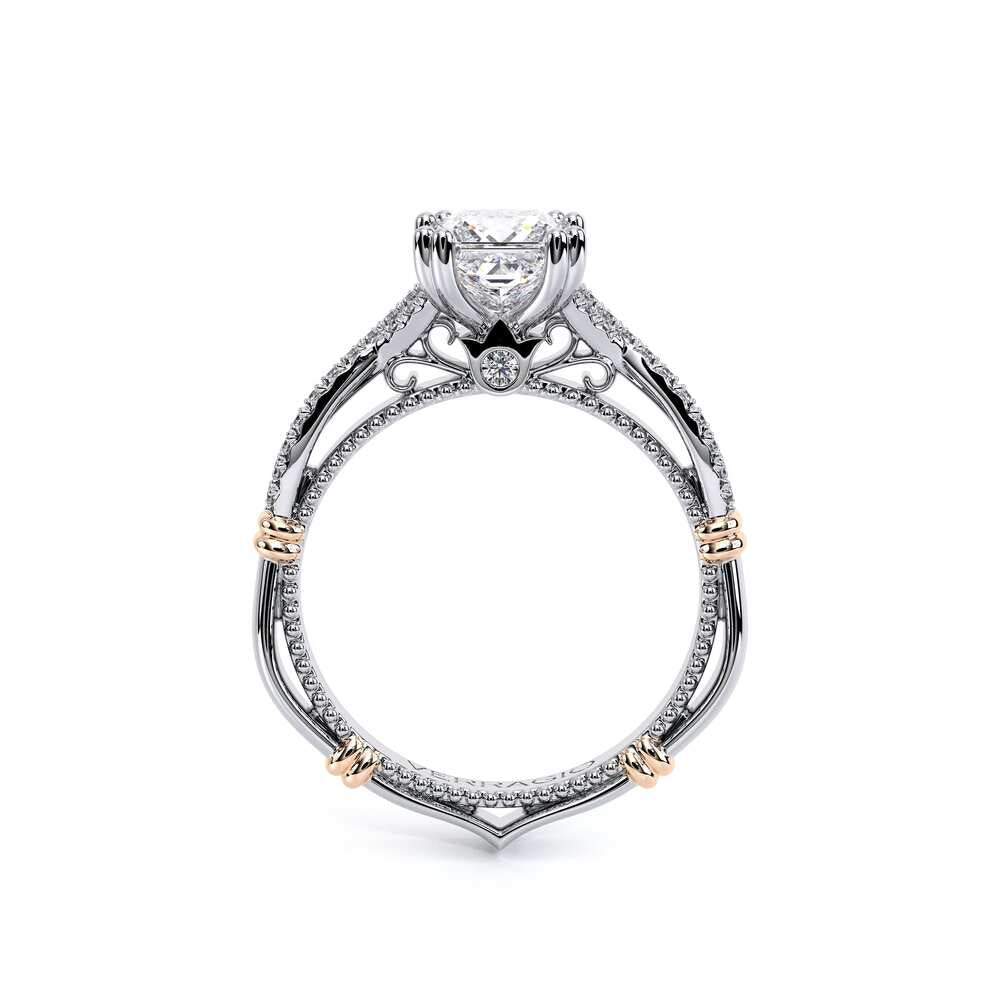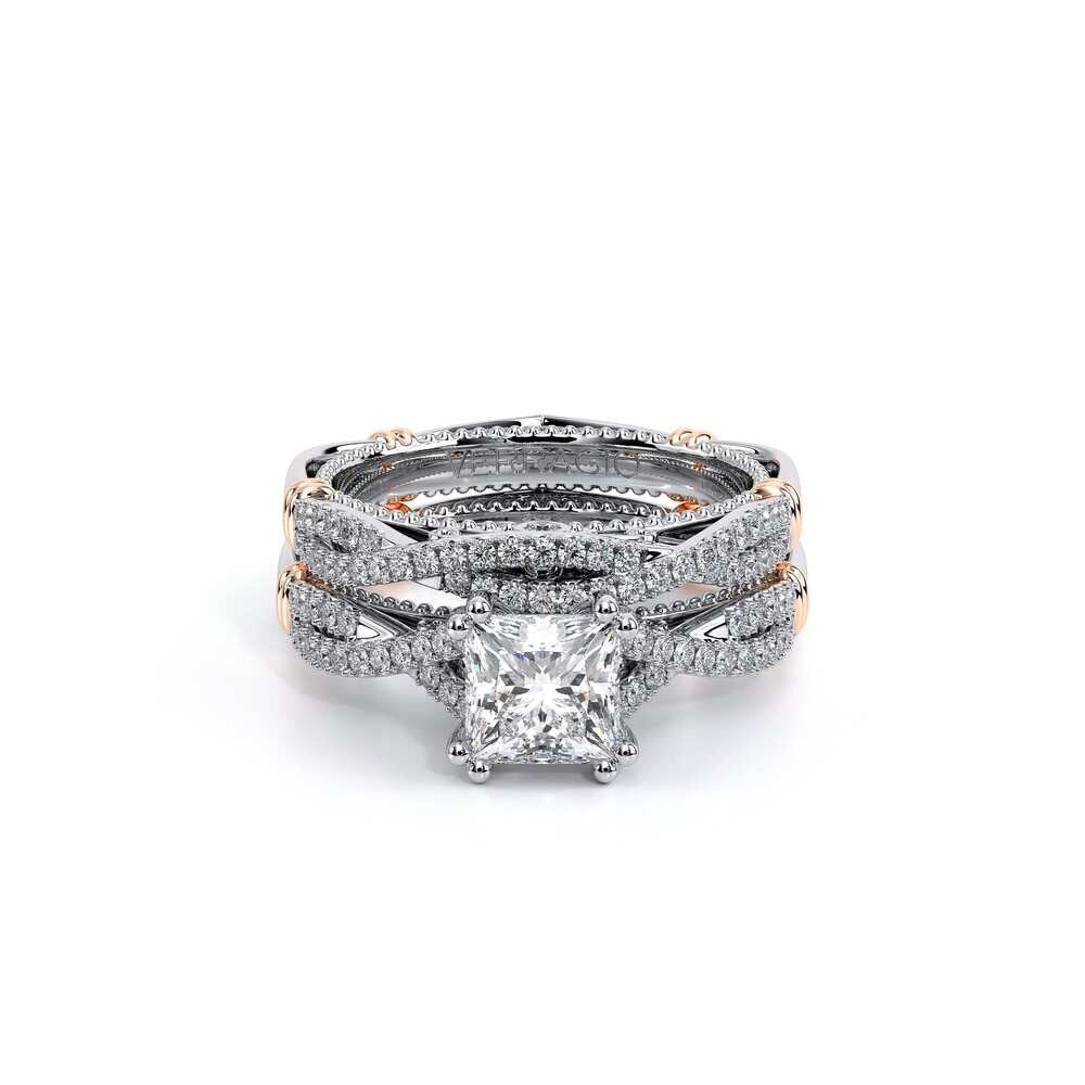 Parisian-105P is a twisted diamond style engagement ring that features Parisian Lace detail, our Verragio signature beading and adorned with rose gold Timeless wraps.