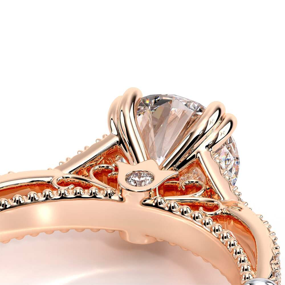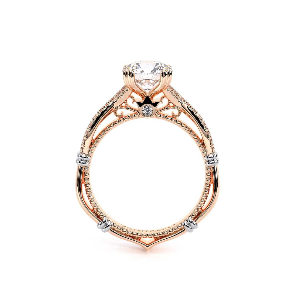 Parisian-105R is a beautifully handcrafted twisted style engagement ring that features the Parisian Lace detail, wrapped in our Verragio signature beading and adorned with rose gold Timeless wraps.
