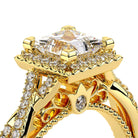 Parisian-106P is a classic engagement ring that features pave set twisted diamond band showcasing a brilliant princess halo, Parisian Lace detail, our Verragio signature beading and lastly adorned with rose gold Timeless wraps.