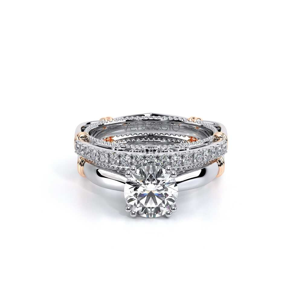 PARISIAN-120W is our classic straight wedding band that is decorated with Parisian Lace, Verragio signature beading and our Timeless wraps that will perfectly compliment any Parisian collection engagement ring. **Note: +$400 for Lace, Beading or Both in a different color