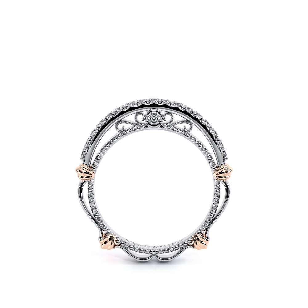 PARISIAN-122W is our classic straight wedding band that is decorated with our unique Fleur di Lis wraps. It is adorned with intricate Parisian Lace and our Verragio signature beading that perfectly compliments any Parisian collection engagement ring. **Note: +$400 for Lace, Beading or Both in a different color