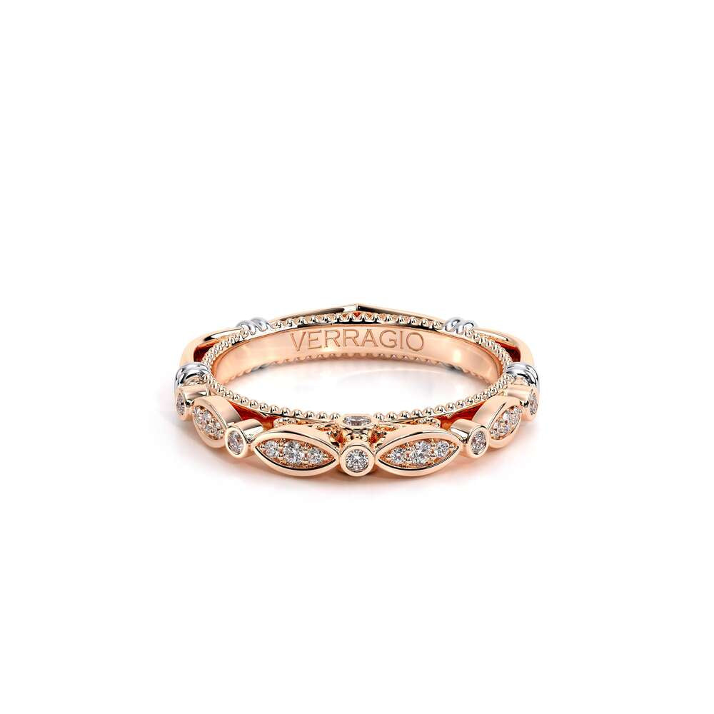 PARISIAN-136W wedding band carries through the beautiful scalloped bezel set diamonds on the band, adorned with Parisian lace and Timeless wraps details to compliment your Verragio engagement ring perfectly. **Note: +$400 for Lace, Beading or Both in a different color