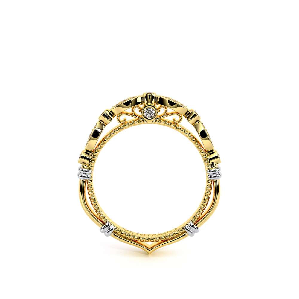 PARISIAN-136W wedding band carries through the beautiful scalloped bezel set diamonds on the band, adorned with Parisian lace and Timeless wraps details to compliment your Verragio engagement ring perfectly. **Note: +$400 for Lace, Beading or Both in a different color