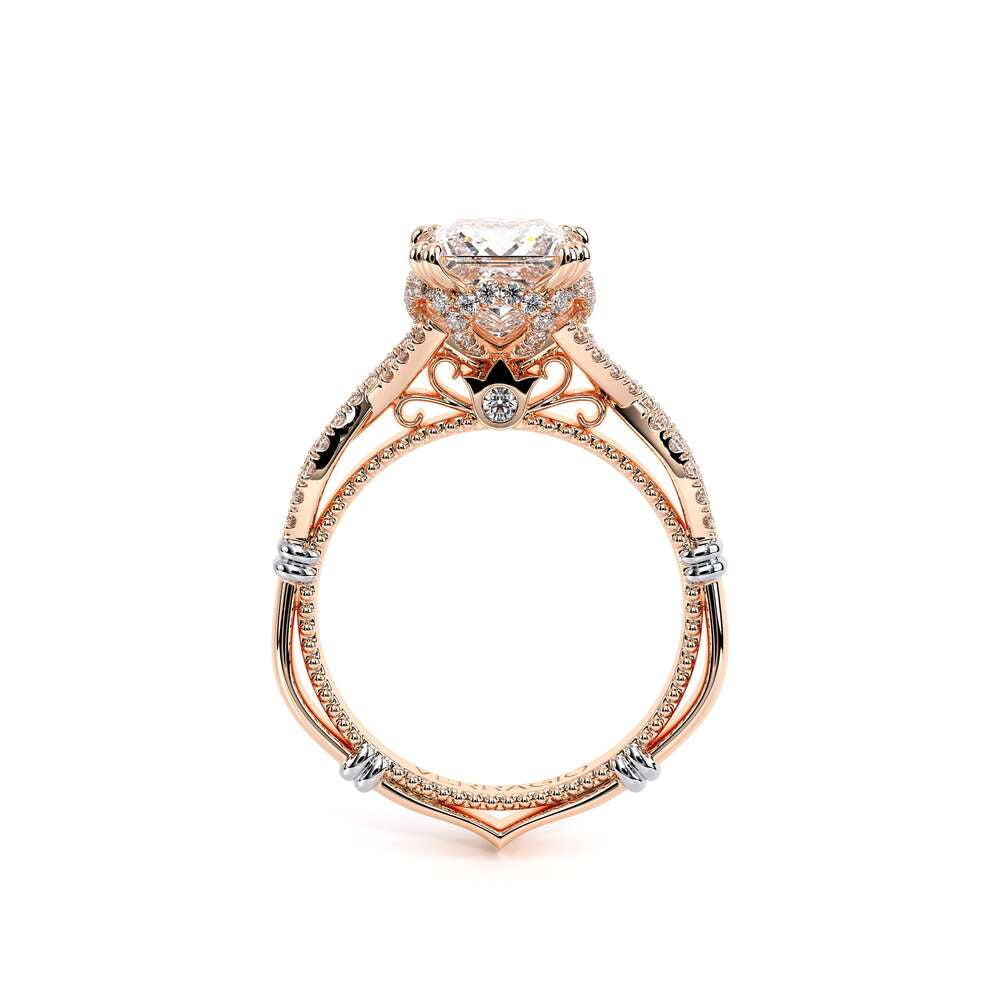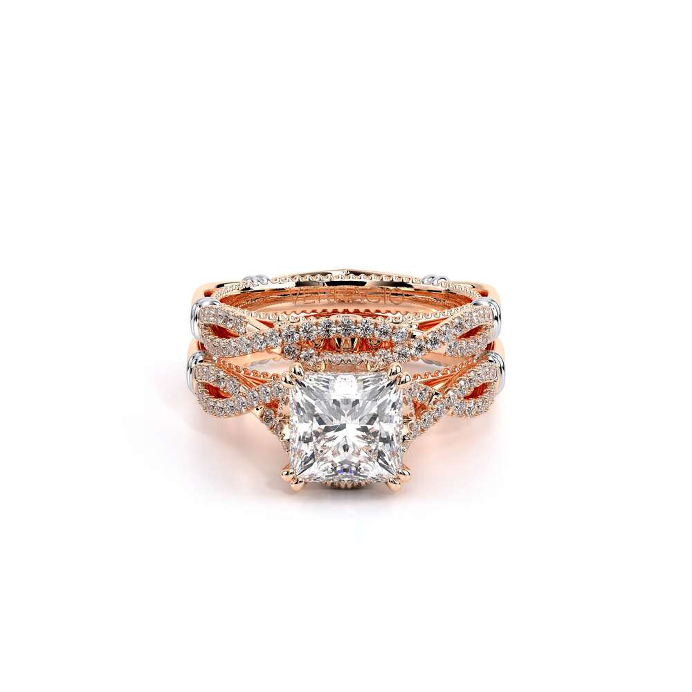 Parisian-153P is a uniquely designed engagement ring that showcases Verragio' s diamond encrusted tiara that enhances a princess diamond center. The details continue through with the addition of the Timeless wraps, Parisian lace and Verragio signature beading.