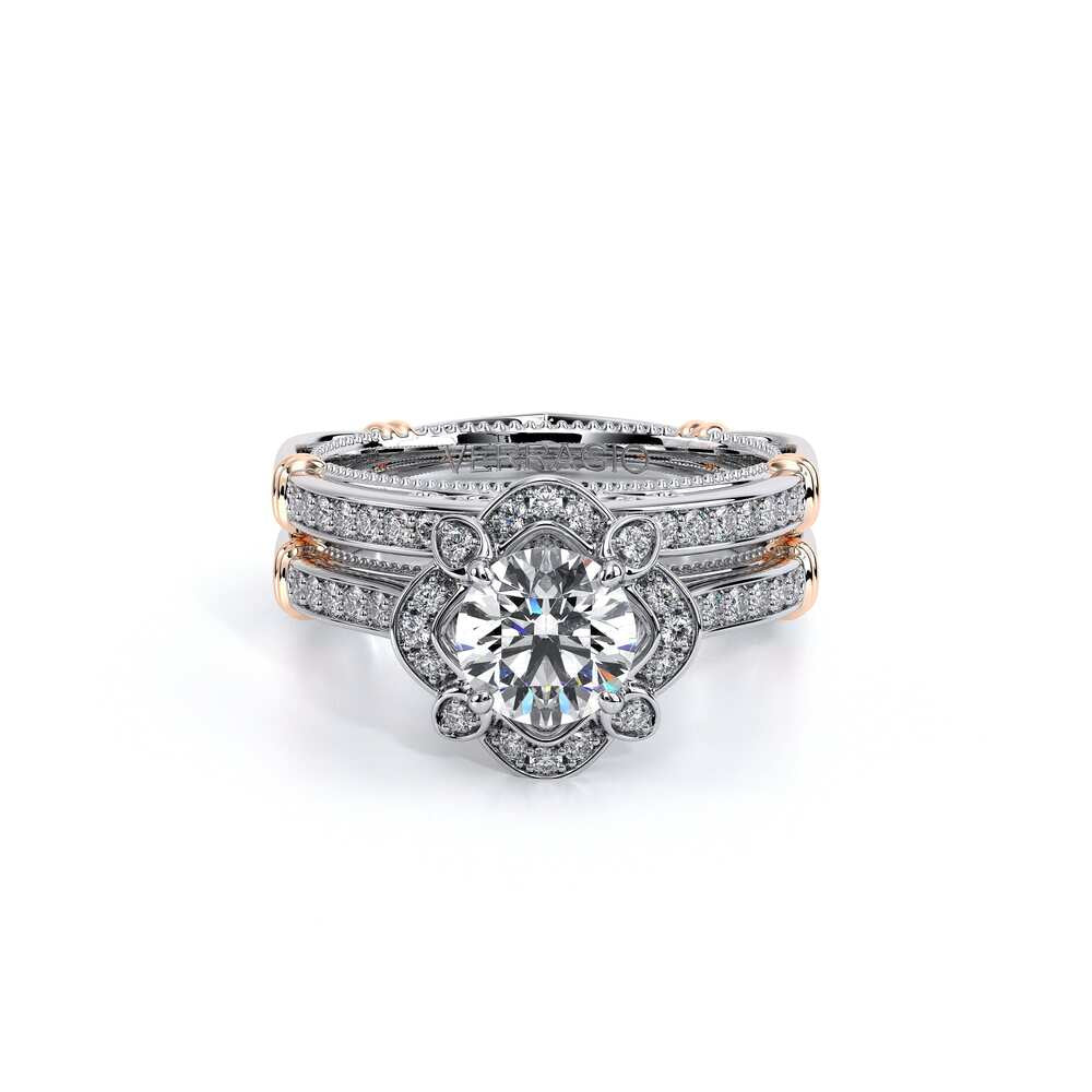 PARISIAN-157W straight wedding band featuring pave set diamonds handcrafted rose gold Parisian lace and Timeless wraps details of the engagement ring to create the perfect matching set. **Note: +$400 for Lace, Beading or Both in a different color