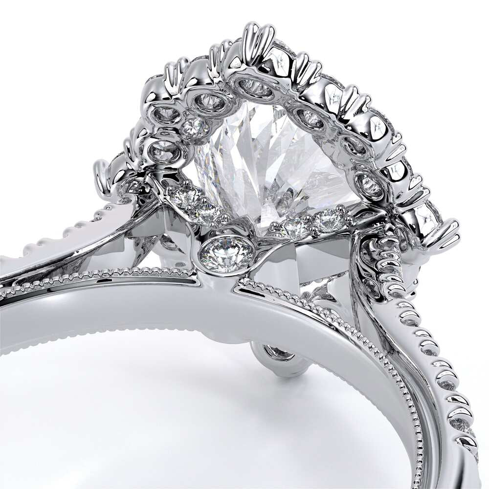 Renaissance-982HOV pave engagement ring radiates elegant styling with our starburst halo. Diamond prongs add sparkle to the profile in this unique handcrafted engagement ring.