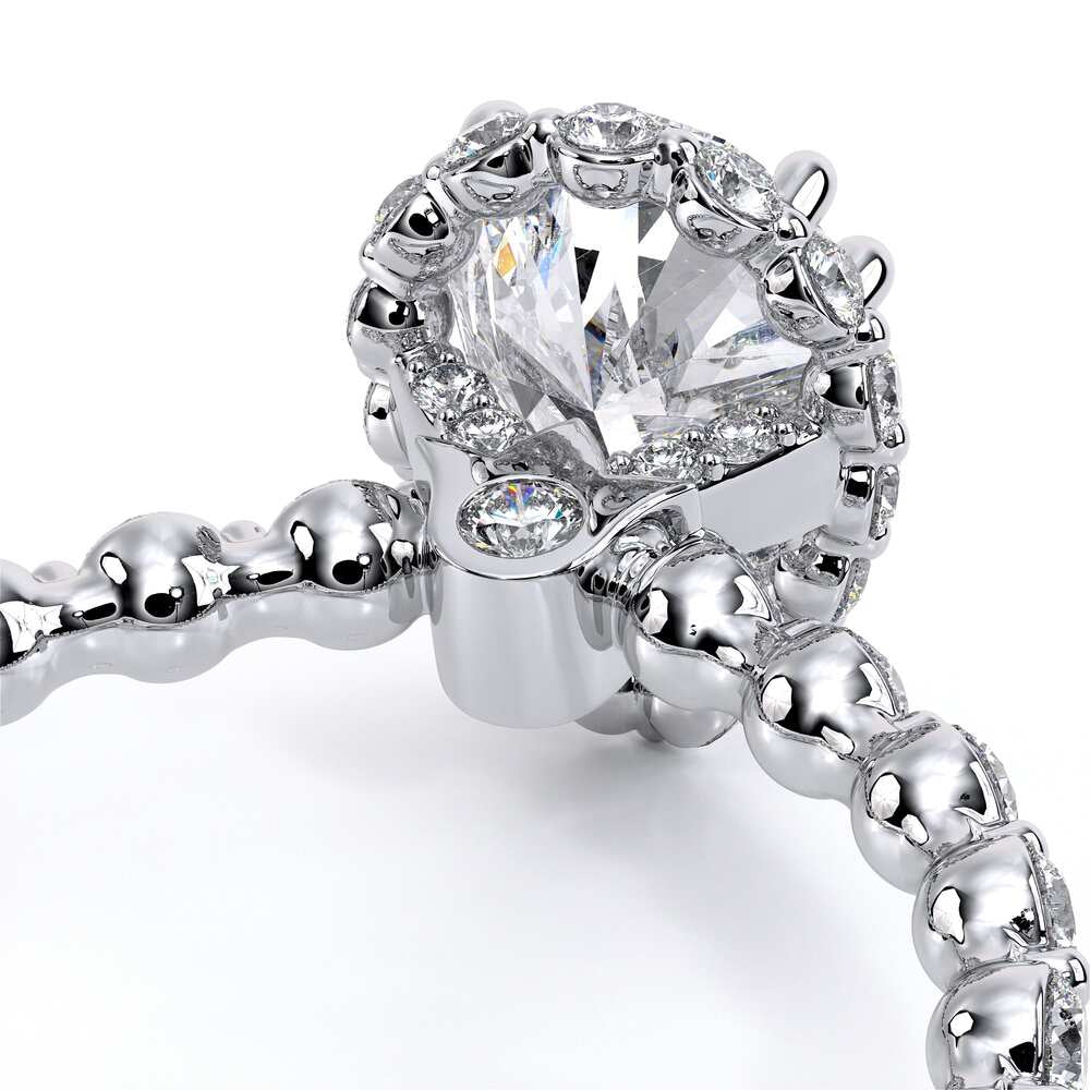 Renaissance-984-HPS2.0 accentuates your choice of center stone with our elegant Stardust halo. Brilliant round diamonds extending three quarters give this unique halo engagement ring extra sparkle.