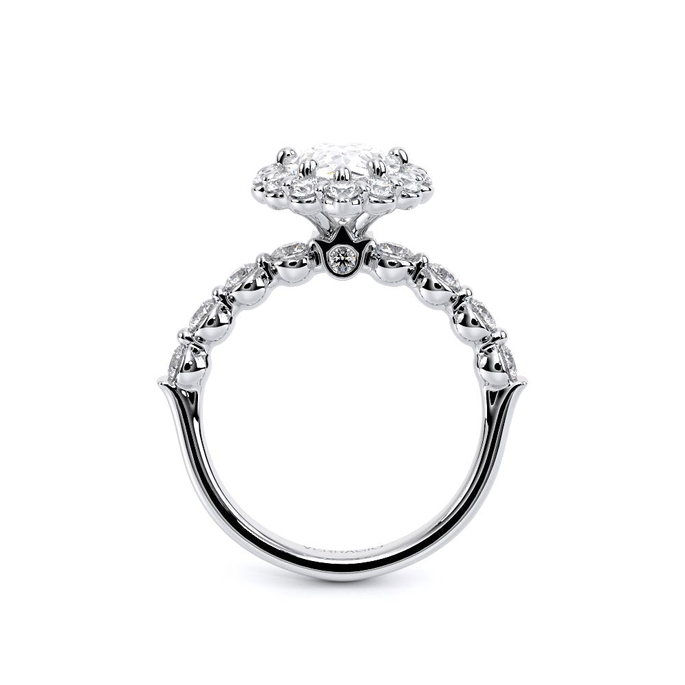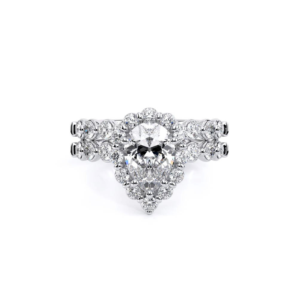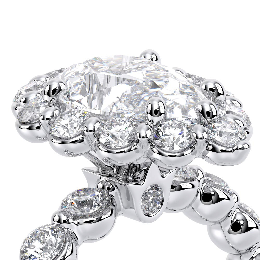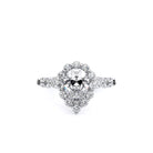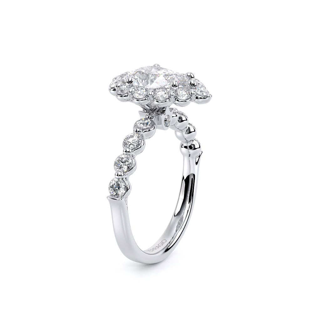 Renaissance-990PS-2.5 features a diamond-rich, halo setting meticulously crafted to cradle each stone securely. Its sleek, shared-prong cup setting exudes elegance, while the design ensures both comfort and durability. Verragio's signature crest unifies this classic yet modern style.