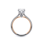 Renaissance-992PS A classic four-prong engagement ring where timeless elegance meets contemporary flair. A unique diamond bridge elevates the center stone for added brilliance and the diamond-studded cathedral shank, featuring subtle milgrain detail, gives a touch of vintage charm. The Verragio signature crest completes the balance of classic and modern.