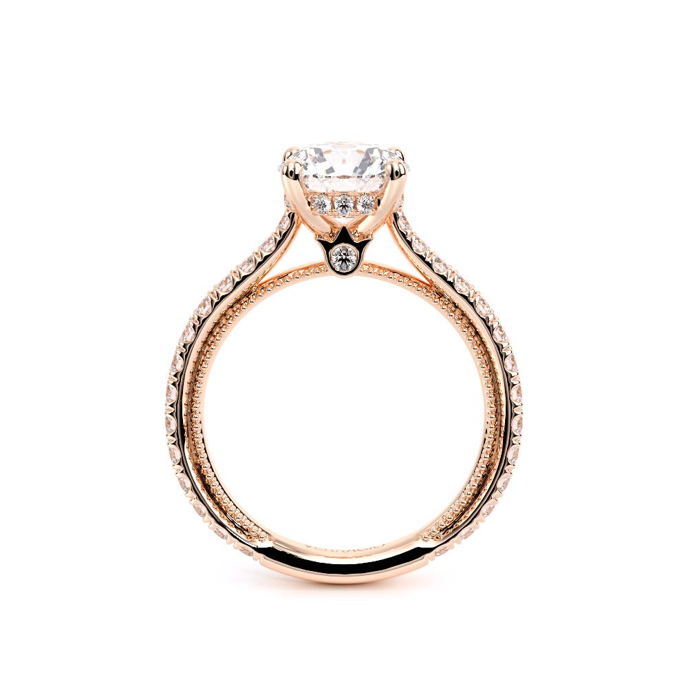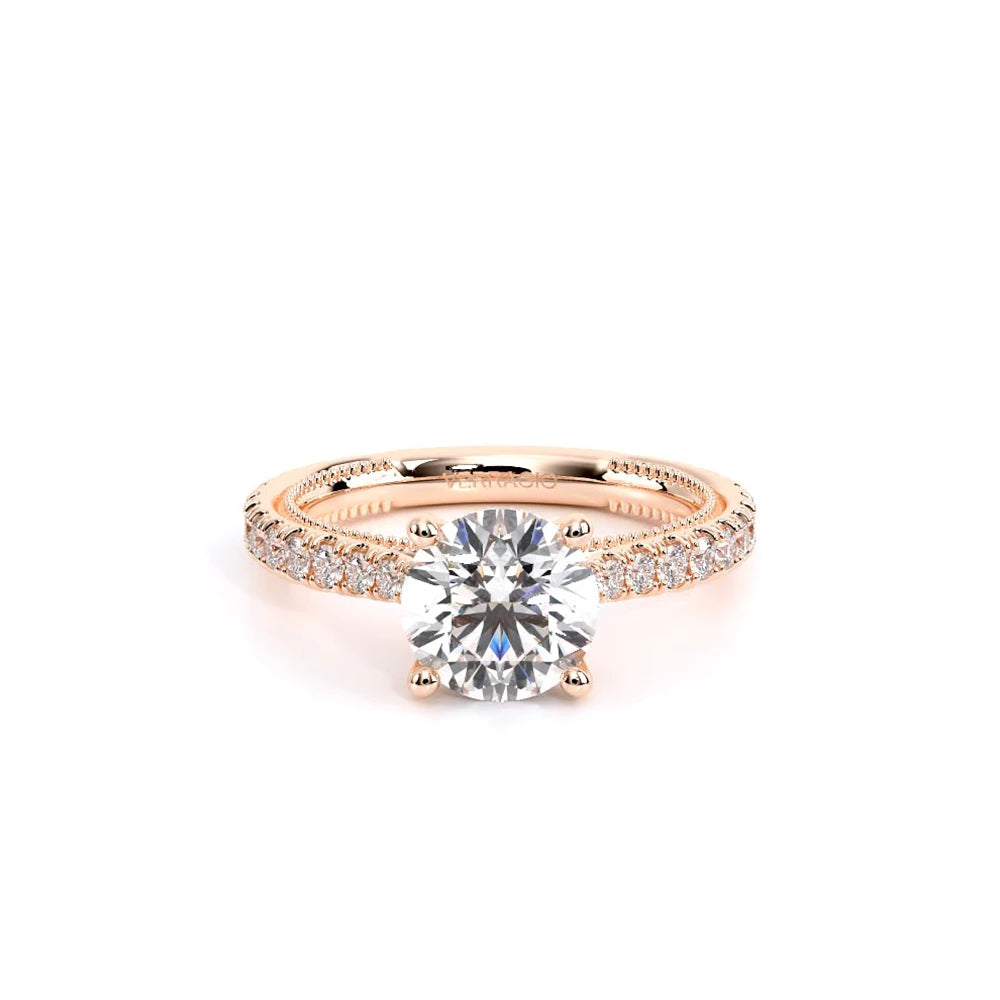 Renaissance-992R1.7 A classic four-prong engagement ring where timeless elegance meets contemporary flair. A unique diamond bridge elevates the center stone for added brilliance and the diamond-studded cathedral shank, featuring subtle milgrain detail, gives a touch of vintage charm. The Verragio signature crest completes the balance of classic and modern.