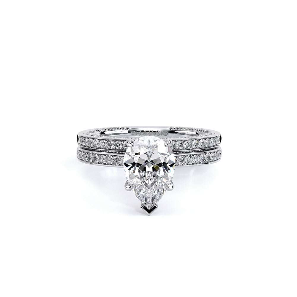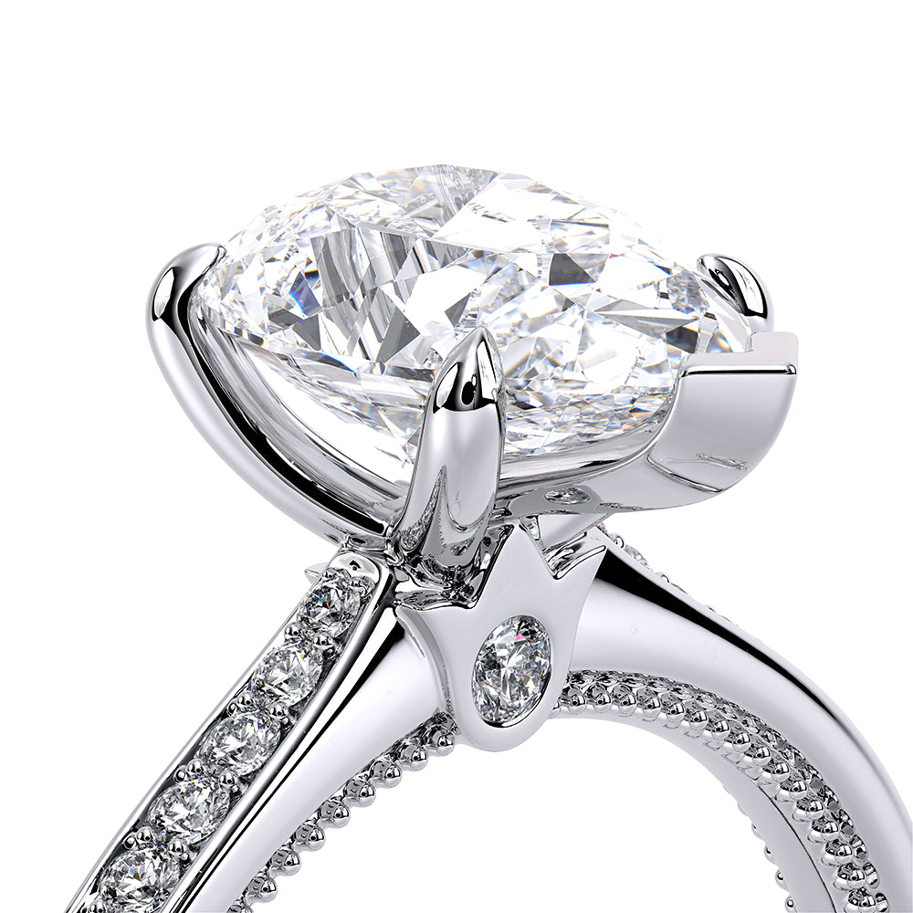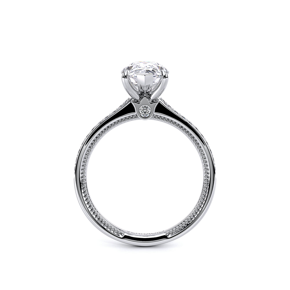 Renaissance-SLD301-OV is a timeless engagement ring, created for your perfect Pear shaped center stone. The diamond band is set to maximize the sparkle and brilliance of your center stone. This setting features an elegant and refined profile with Verragio's signature beading and crest.