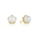 Express your style with timeless Reverie Tiara Diamond and Pearl Studs. This lavish look in 18k yellow gold features diamonds and pearls for a Victorian-inspired earring.