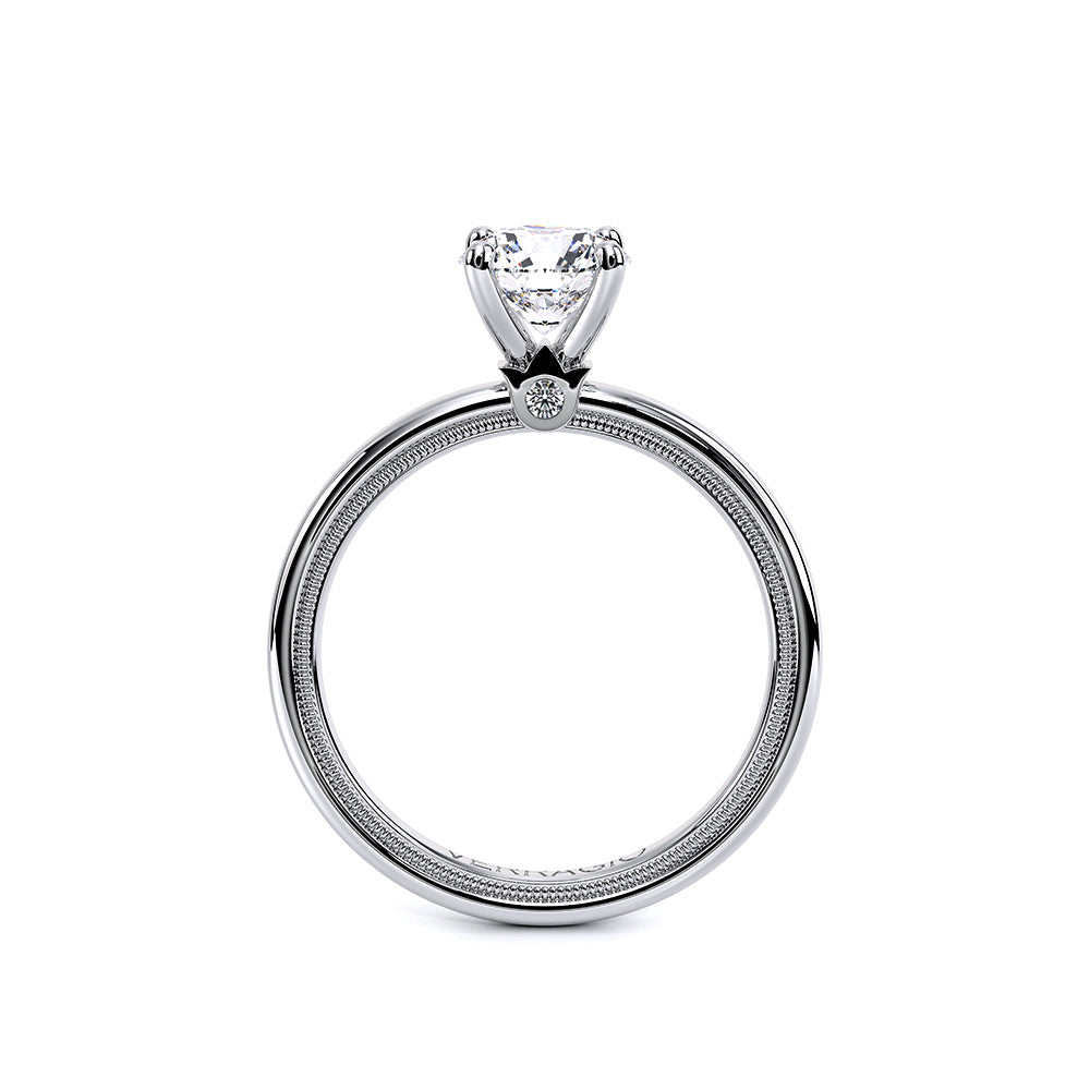 TR-120R4-S features an elegant solid band that is forged under extreme pressure and pushes the limits of refined durability. This ring features our hand sculpted Signature Verragio beading and Verragio crest to perfectly highlight your choice of center stone.