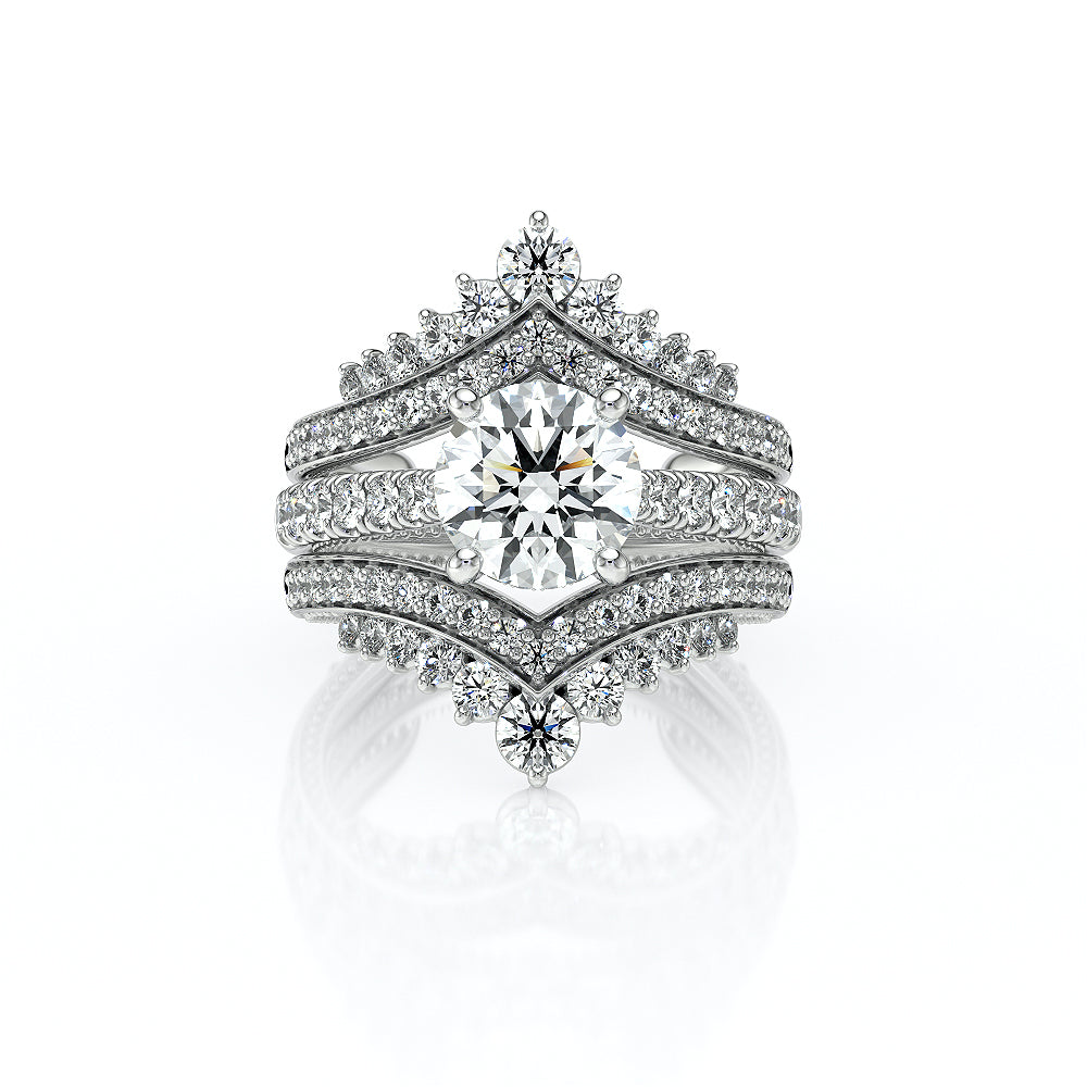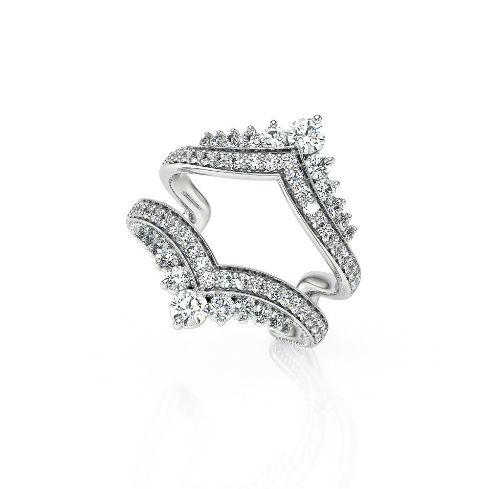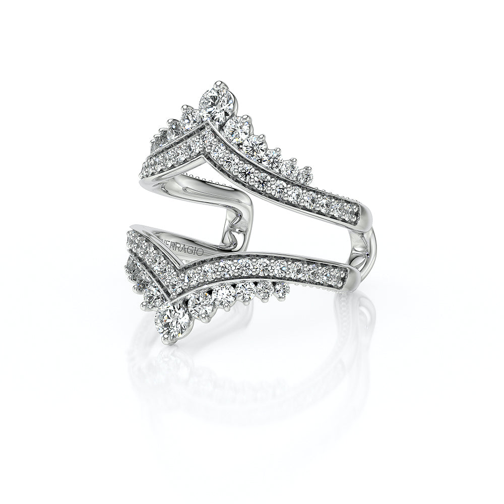 The diamond-intensive embellisher, VNG-2042W, showcases two inner rows of delicate round diamonds, accented by an outer row of graduating stones that transition seamlessly from small to large. Its refined structure adds an element of bold sophistication, exemplifying Verragio's dedication to timeless design.
