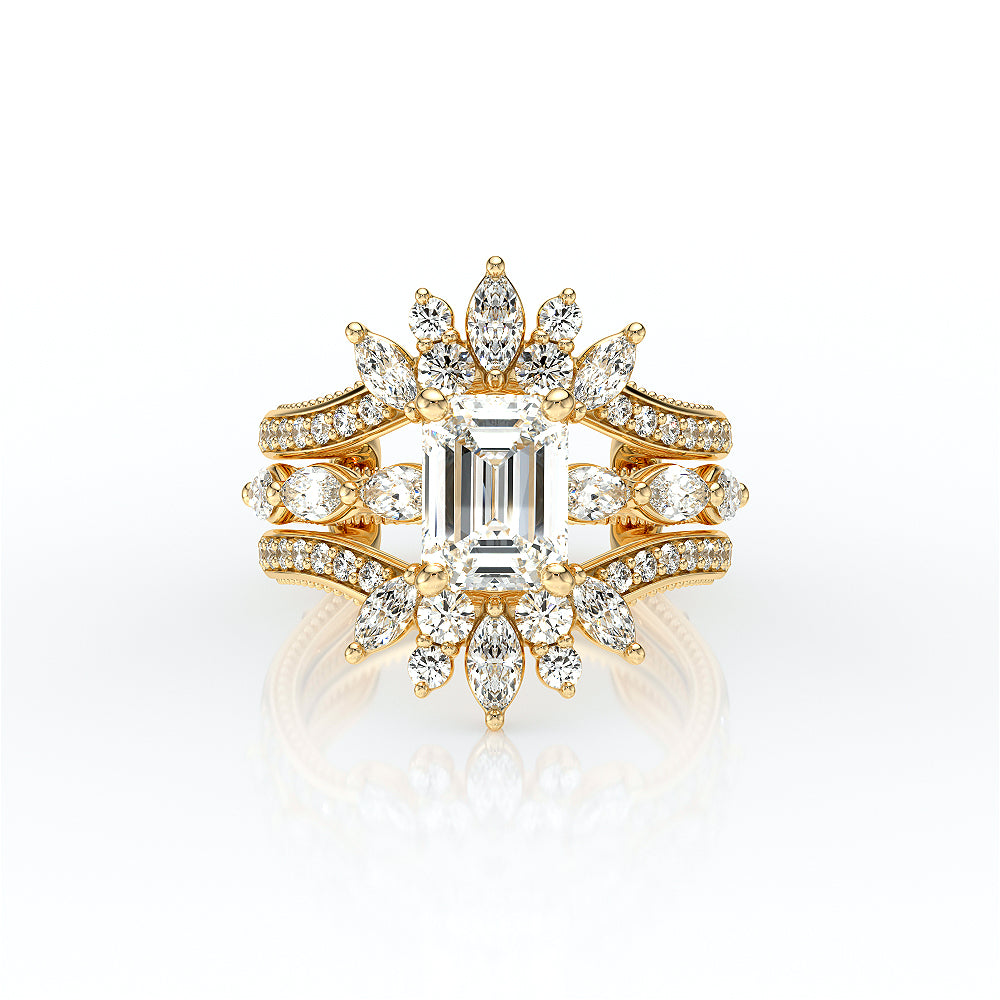 The VNG-2205EM combines three bold south-to-west facing marquise stones with Verragio beading and a diamond head, offering a sophisticated design with added sparkle.