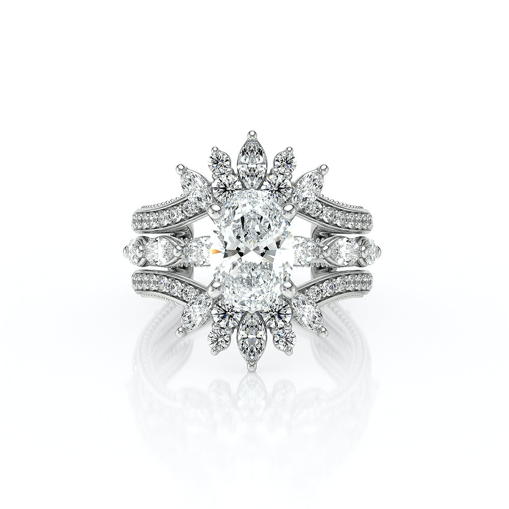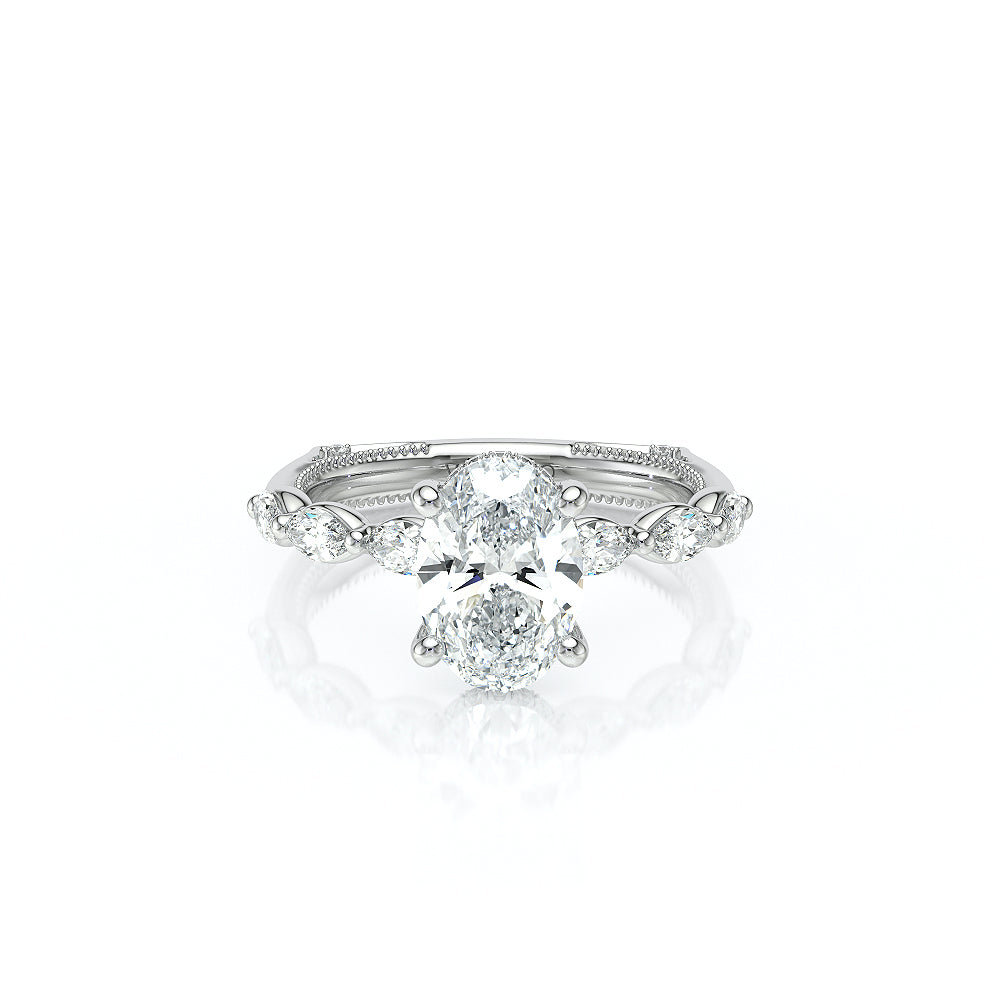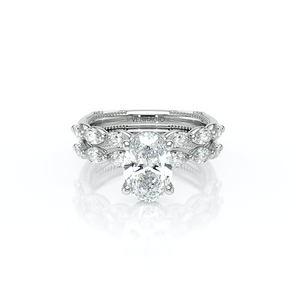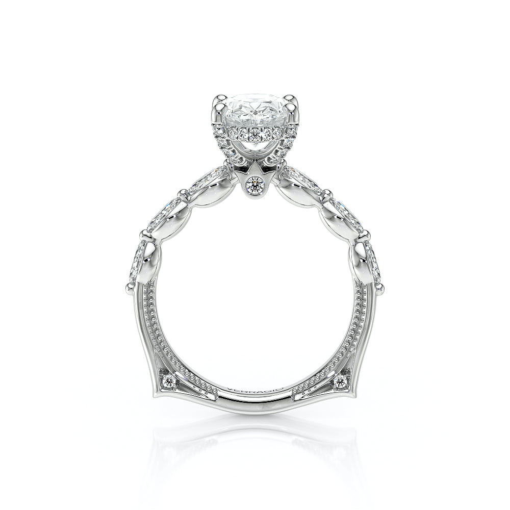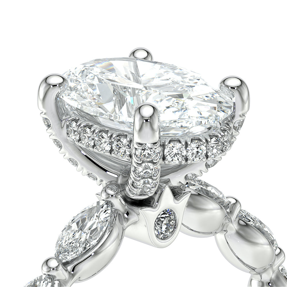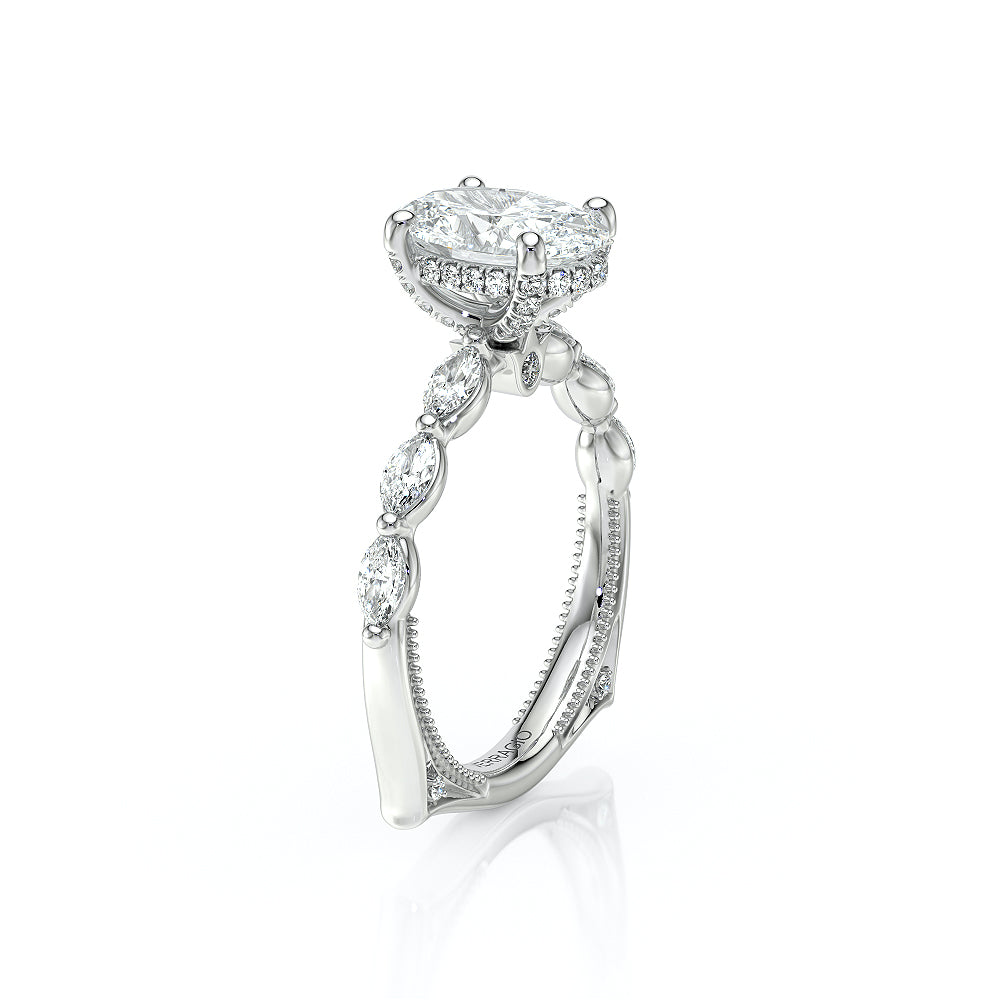 The VNG-2205OV highlights three striking south-to-west facing marquise stones on the shank, paired with Verragio beading and a diamond head for an elegant and unique design.