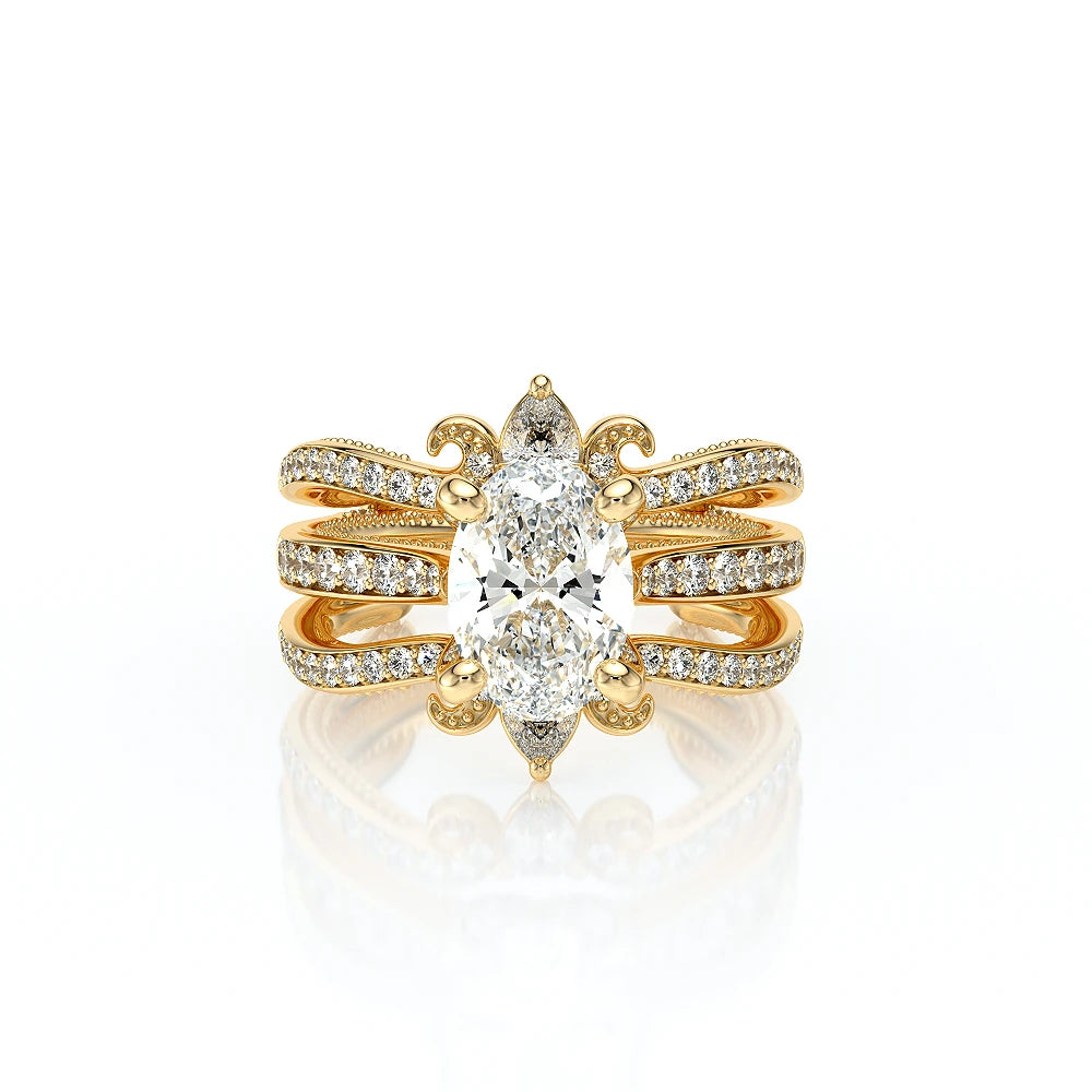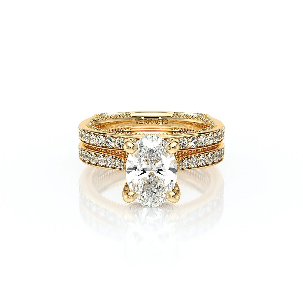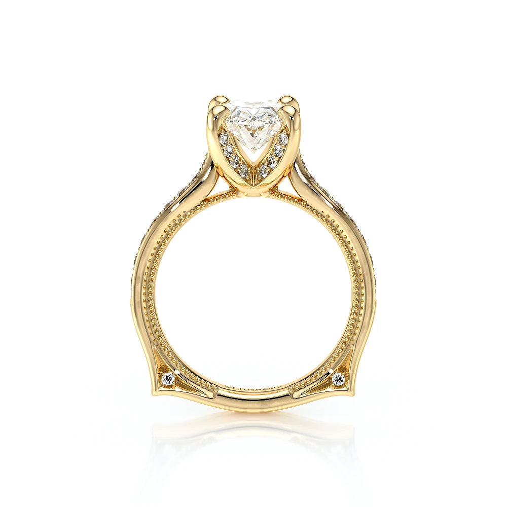 The VNG-2207OV pairs its euro-style design with an oval-shaped center stone setting, complemented by two bezels, signature Verragio beading, and two rows of diamonds on each side of the prong for an exquisite finish.