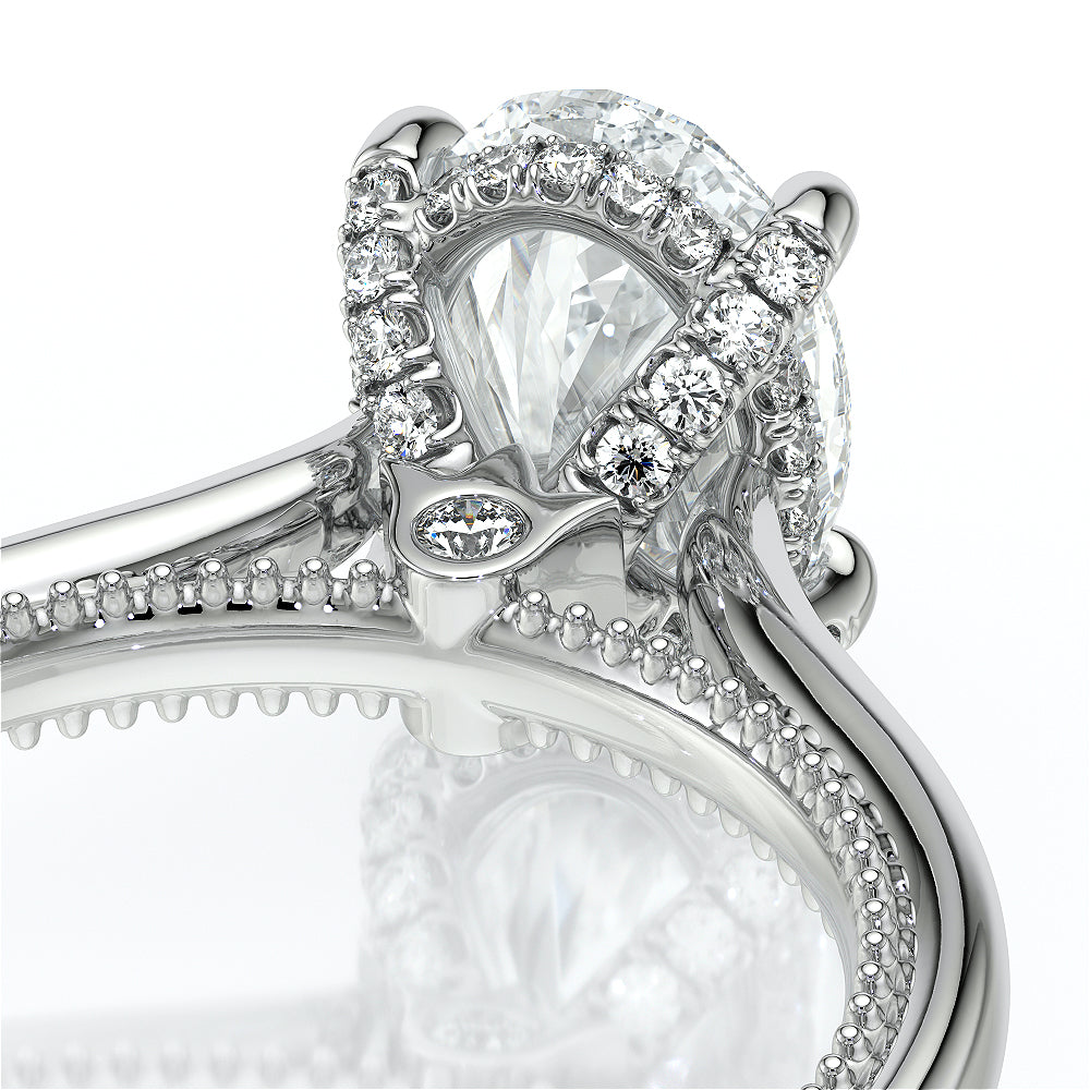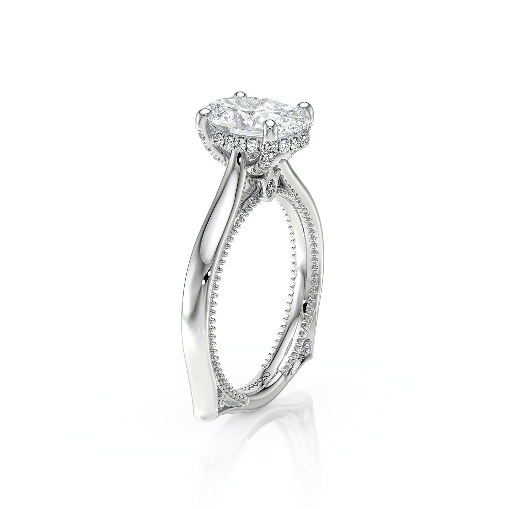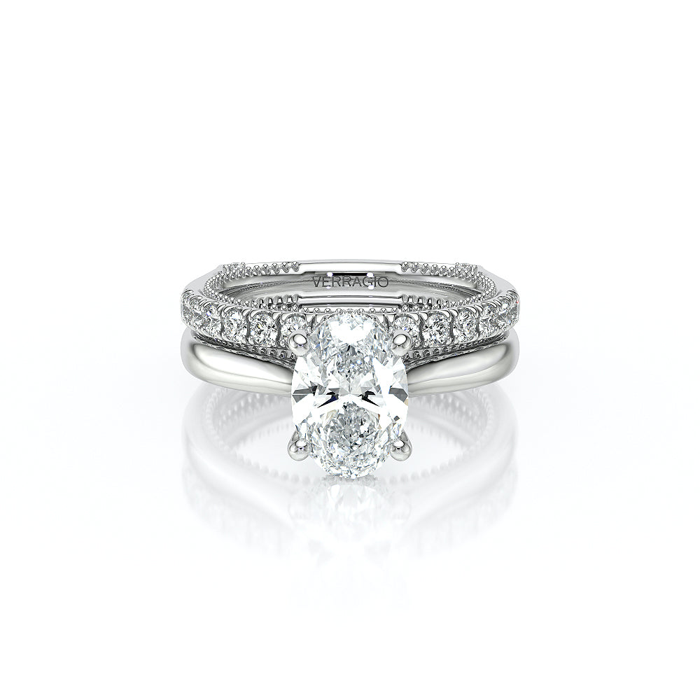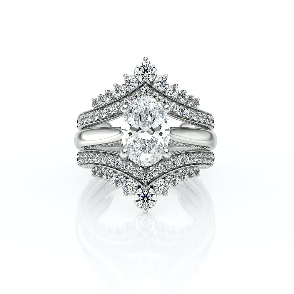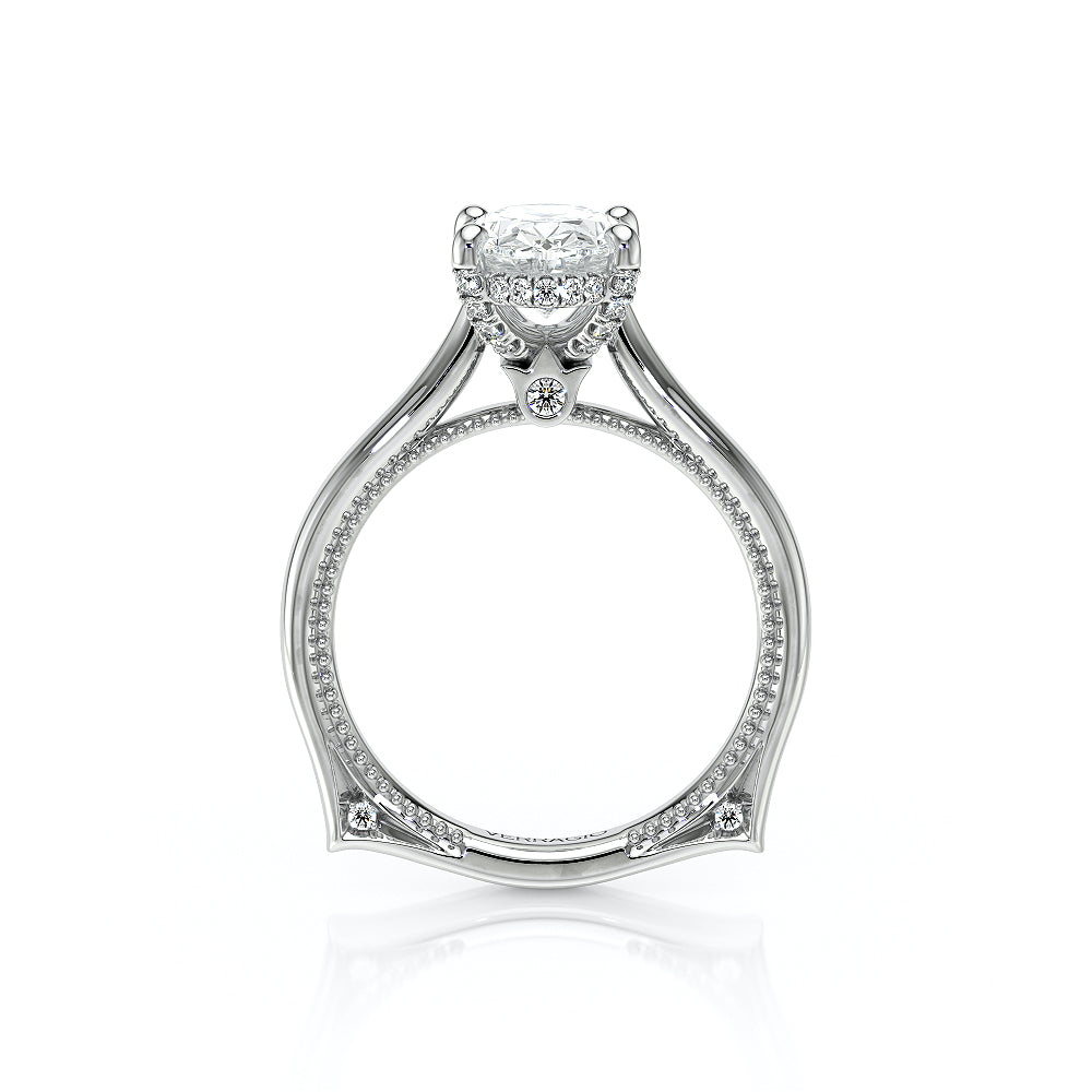 The VNG-2208OV-S is a solitaire setting tailored for an oval center stone, featuring diamond accents on the prongs and bridge for a sophisticated design.