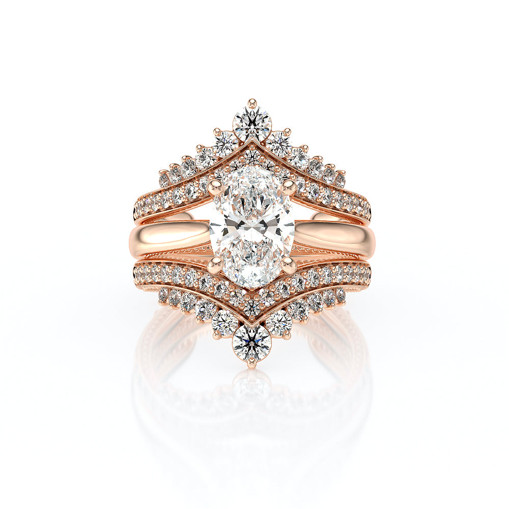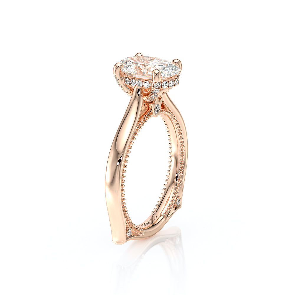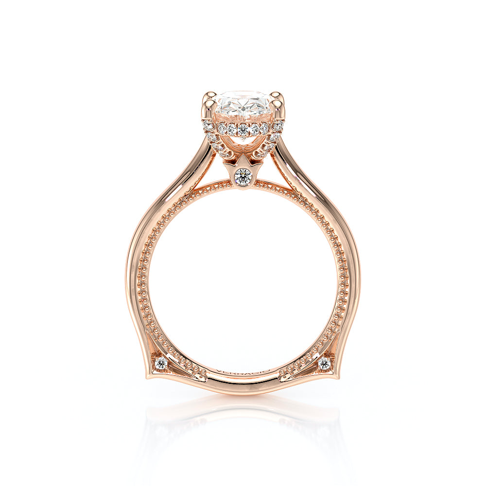 The VNG-2208OV-S is a solitaire setting tailored for an oval center stone, featuring diamond accents on the prongs and bridge for a sophisticated design.