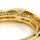 VENETIAN-5003W from the Venetian Collection, features a twisted band encrusted with round brilliant diamonds. The inside profile is beautifully laced with three bezel set round diamonds on each side infused with our signature beading. Compliment your Verragio engagement ring by choosing either a twisted or a straight band.